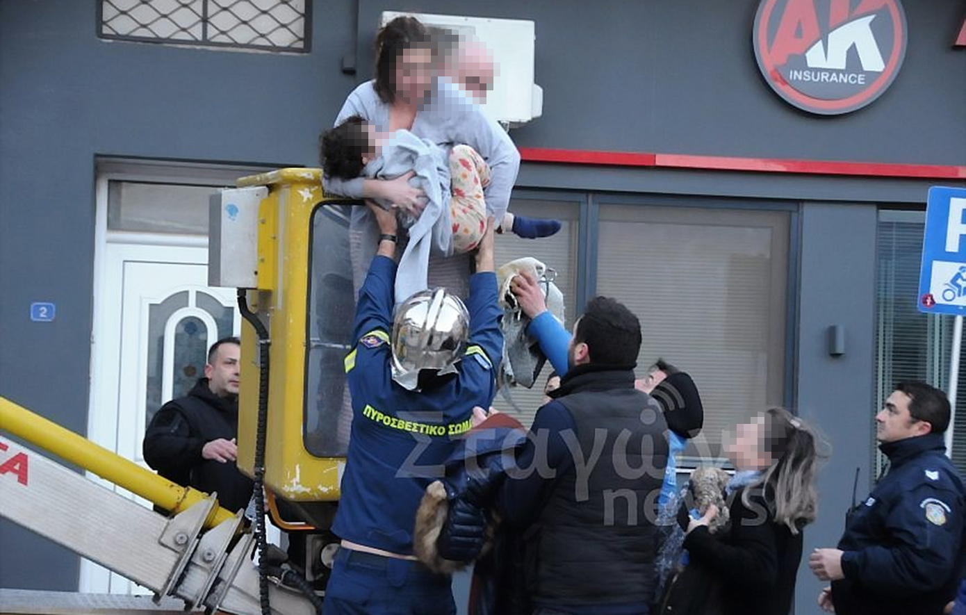 Όπως φαίνεται και στα βίντεο και τις φωτογραφίες απεγκλωβίστηκαν με τη βοήθεια των πυροσβεστών που χρησιμοποίησαν το ειδικό κλιμακοφορό όχημα για να κατεβάσουν από δεύτερο και τρίτο όροφο, μητέρες με παιδιά στην αγκαλιά,