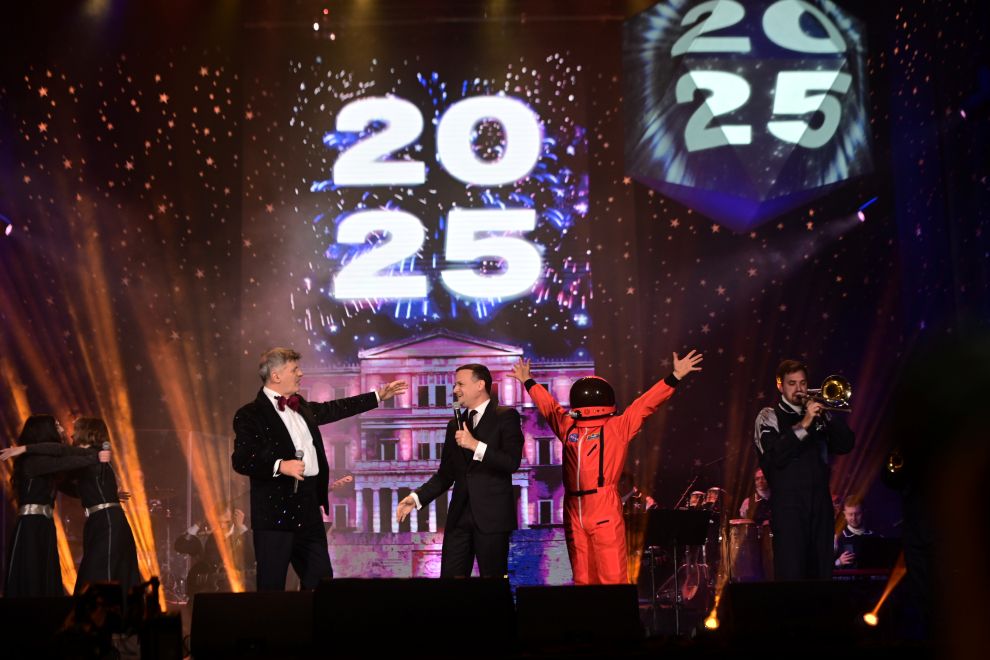 Όταν έφτασε η ώρα για την αλλαγή του χρόνου, ο δήμαρχος Αθηναίων Χάρης Δούκας ανέβηκε στη σκηνή της πλατείας και μαζί με τους καλλιτέχνες έκανε την αντίστροφη μέτρηση για τον ερχομό του 2025. Στις 12 ακριβώς πυροτεχνήματα φώτισαν τον αττικό ουρανό, μόνο που για πρώτη φορά ήταν στην πλειοψηφία τους αθόρυβα, ώστε να μην ταραχθούν οι τετράποδοι «κάτοικοι» της πρωτεύουσας. Ταυτόχρονα, στον ουρανό εκατοντάδες drones δημιούργησαν φωτεινά σχέδια.