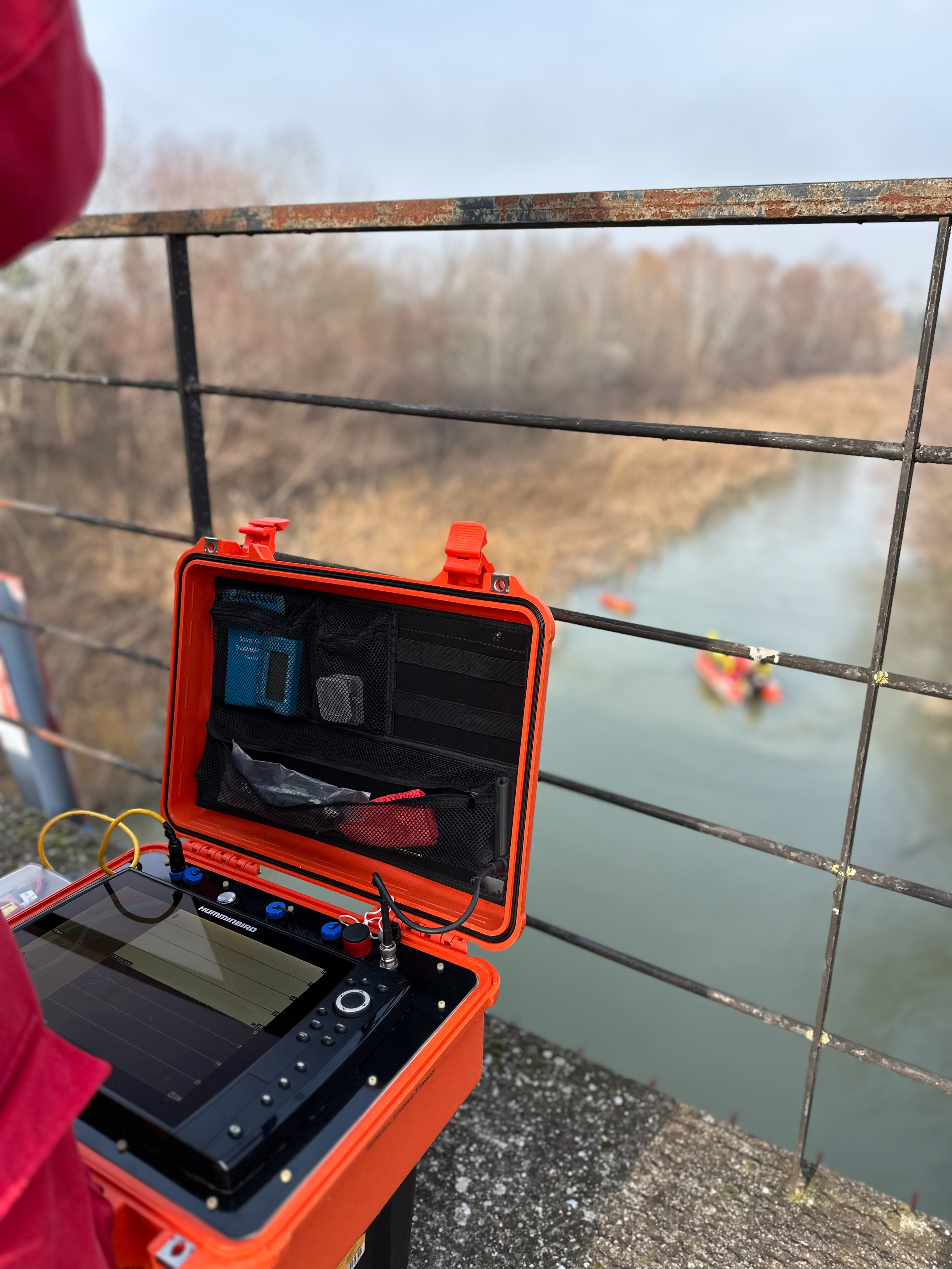 Ναυαγοσώστες του Ελληνικού Ερυθρού Σταυρού από την Πάτρα «σκανάρουν» με το ρομποτικό σύστημα «Έμιλυ» τον βυθό του Πηνειού. Ψάχνουν ακόμη και σε δύσκολα σημεία μέσα στο ποτάμι, εκεί όπου υπάρχουν ξεριζωμένα δέντρα από την κακοκαιρία «Ντάνιελ».
