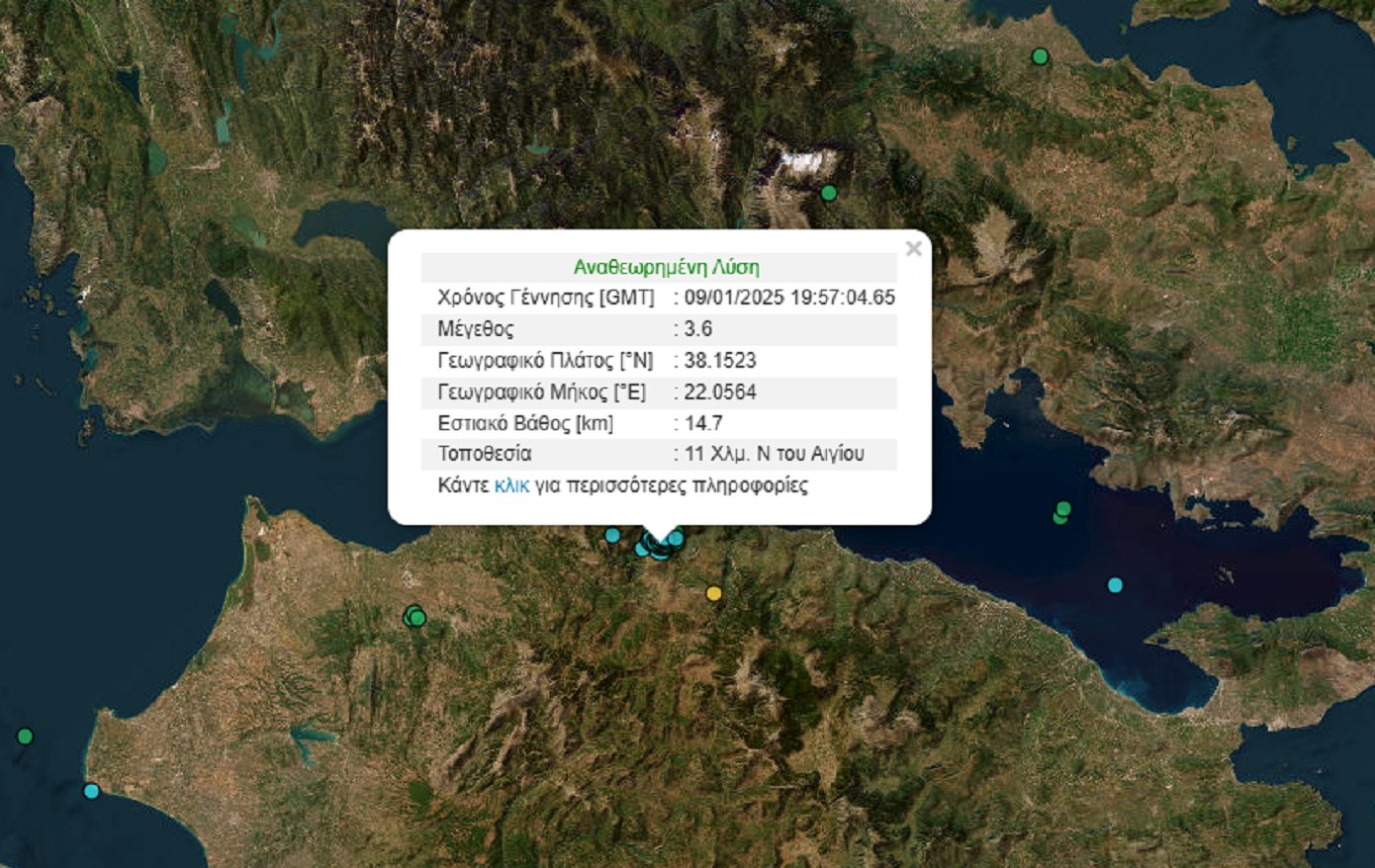 Σημειώνεται ότι σήμερα το πρωί στις 07:55 και στις 07:40 καταγράφηκαν δύο σεισμικές δονήσεις, μεγέθους 3,7 και 3,2 βαθμών της κλίμακας Ρίχτερ, αντίστοιχα, που είχαν το ίδιο επίκεντρο με την αποψινή δόνηση.