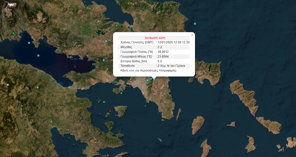 Σεισμός σημειώθηκε το μεσημέρι της Κυριακής στην Αττική, με επίκεντρο τον Γέρακα.