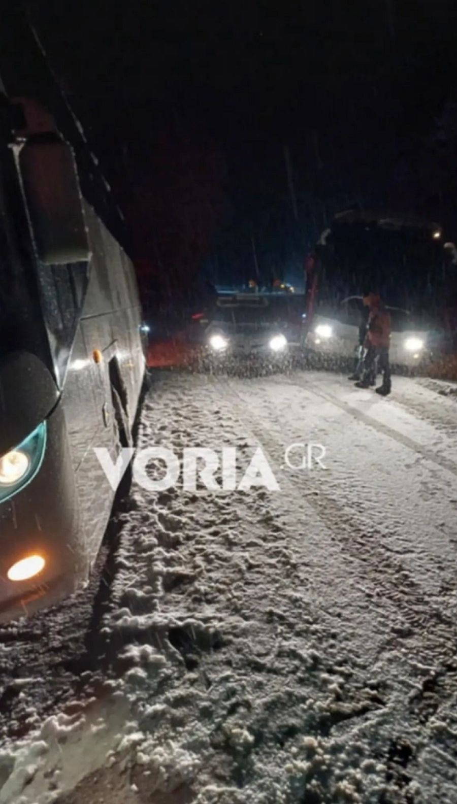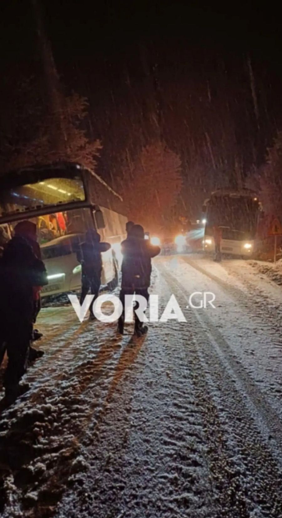 Σύμφωνα με το voria.gr λόγω της κακοκαιρίας τα λεωφορεία κόλλησαν στο χιόνι και αμέσως ειδοποιήθηκε η πυροσβεστική υπηρεσία που οργάνωσε επιχείρηση για τον απεγκλωβισμό των επιβατών.