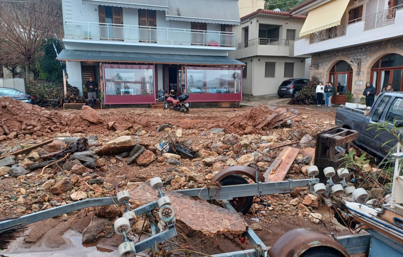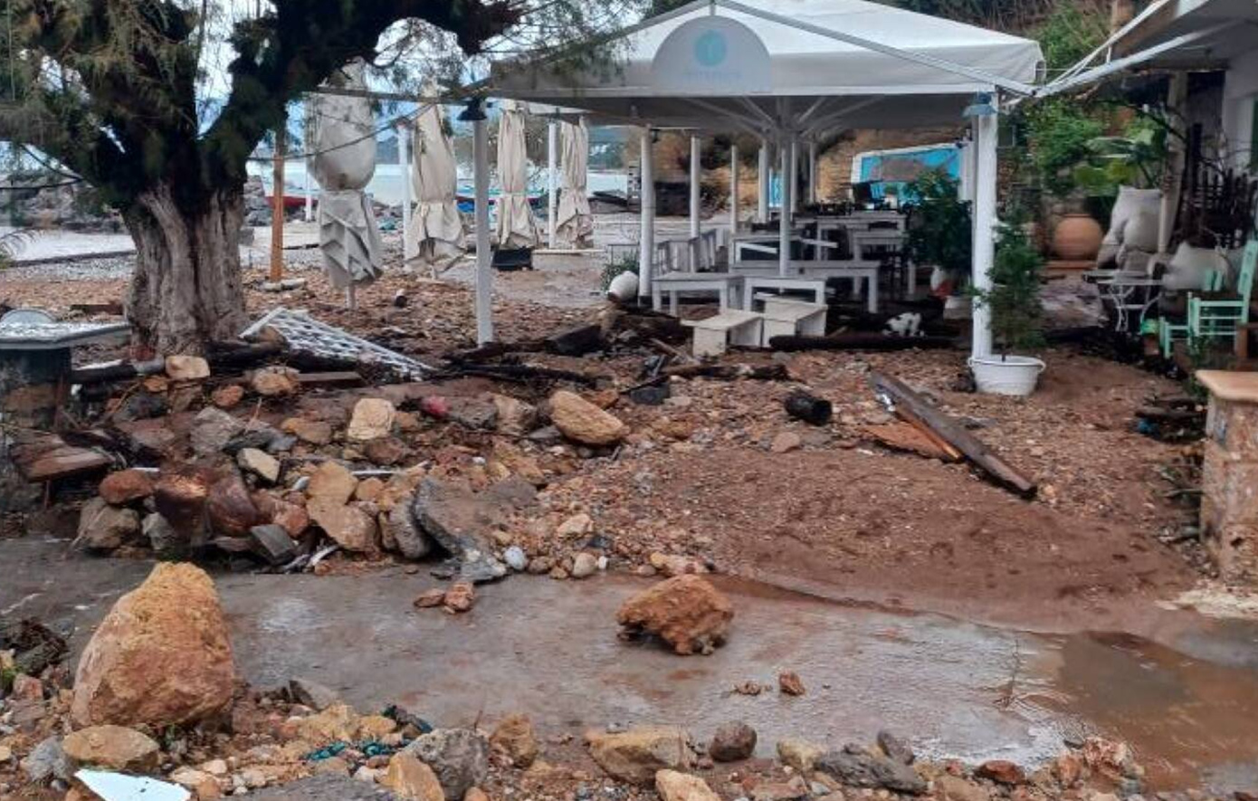 Σύμφωνα με πληροφορίες, από τους όγκους των χωμάτων παρασύρθηκαν αυτοκίνητα και βάρκες, ενώ προκλήθηκαν ζημιές σε παραλιακά καταστήματα.