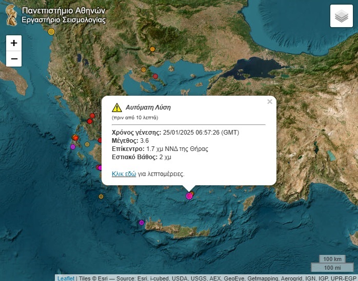 Σεισμική δόνηση μεγέθους 3,6 Ρίχτερ σημειώθηκε πριν λίγα λεπτά, ενώ το επίκεντρο εντοπίζεται 1.7χλμ νότια-νοτιοδυτικά της Θήρας.