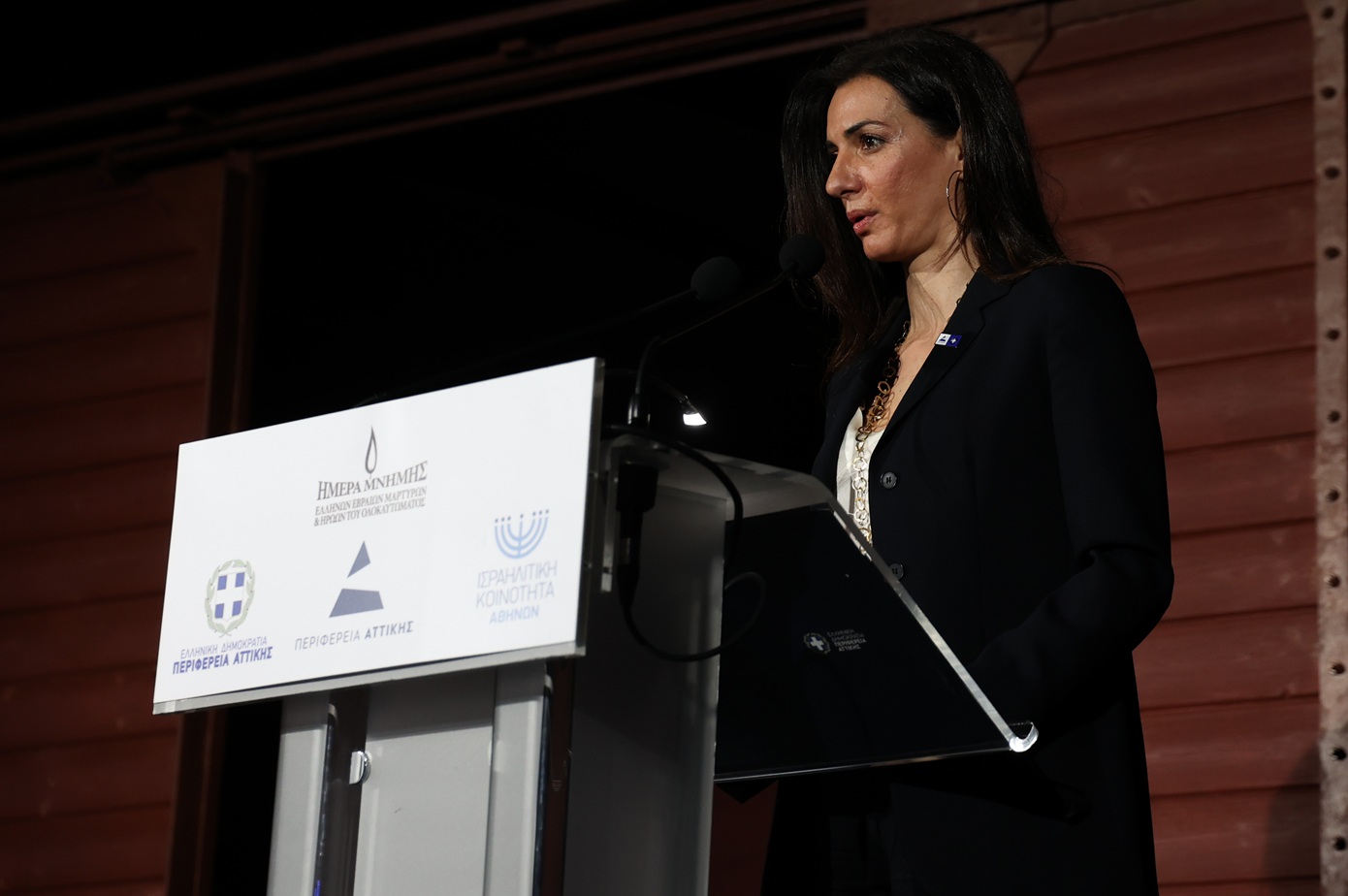 Η αναπληρώτρια περιφερειάρχης Αττικής Χριστίνα Κεφαλογιάννη εκπροσωπώντας τον περιφερειάρχη Νίκο Χαρδαλιά ανέφερε μεταξύ άλλων: «Σκύβουμε με σεβασμό το κεφάλι στα εκατομμύρια θύματα της ναζιστικής θηριωδίας μεταξύ των οποίων περισσότεροι από 67.000 Έλληνες Εβραίοι. Σήμερα συμπληρώνονται 80 χρόνια από την απελευθέρωση του ‘Αουσβιτς του μεγαλύτερου από τα ναζιστικά στρατόπεδα συγκέντρωσης στα οποία διαπράχθηκε το ειδεχθέστερο έγκλημα ιστορία της ανθρωπότητας. Οκτώ δεκαετίες μετά συνεχίζουμε να θυμόμαστε, να τιμούμε και δεσμευόμαστε «ποτέ ξανά». Η 27η Ιανουαρίου διεθνής ημέρα μνήμης για τα θύματα του ολοκαυτώματος και επιπλέον για την Ελλάδα ημέρα μνήμης των Ελλήνων εβραίων μαρτύρων και ηρώων το ολοκαυτώματος δεν είναι μόνο μία ημέρα τιμής και μνήμης είναι και μια ευκαιρία αναστοχασμού, συνειδητοποίησης του χρέους μας να μην εθελοτυφλούμε. Να μην εφησυχάζουμε. Συνειδητοποίησης της ευθύνης που έχουμε ως δημοκρατικοί πολίτες του 21ου αιώνα, να υπερασπιστούμε μια κοινωνία ισότητας και ισονομίας που θα στηρίζεται στο αυτονόητο, τον σεβασμό της ανθρώπινης αξιοπρέπειας και τον ανθρωπίνων δικαιωμάτων. Οφείλουμε να τιμάμε έμπρακτα τη μνήμη των θυμάτων του ολοκαυτώματος αγωνιζόμενοι καθημερινά προκειμένου να αποτρέψουμε την επανάληψη ανάλογων εγκλημάτων περιφρουρώντας τις αρχές της ελευθερίας της δημοκρατίας της ισότητας και του κράτους δικαίου.».