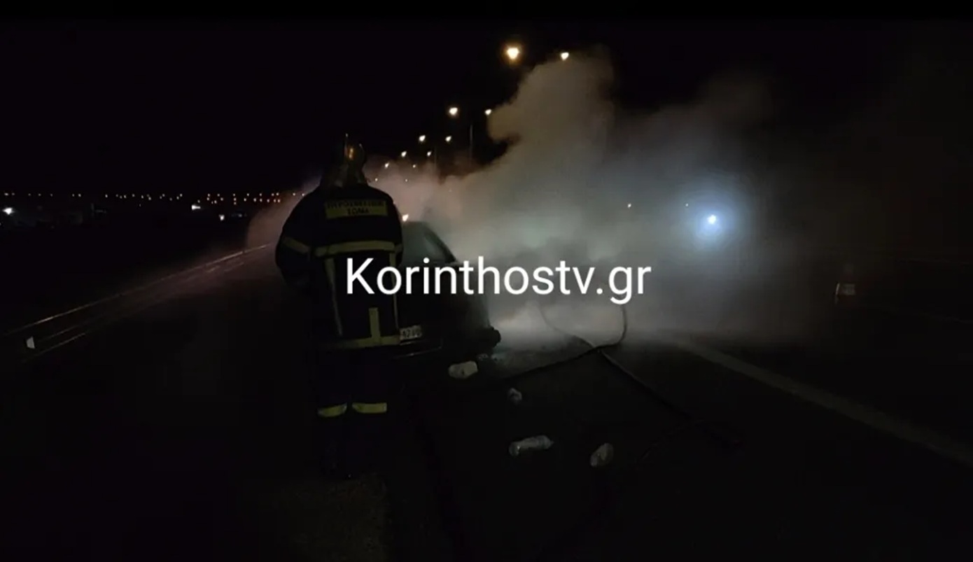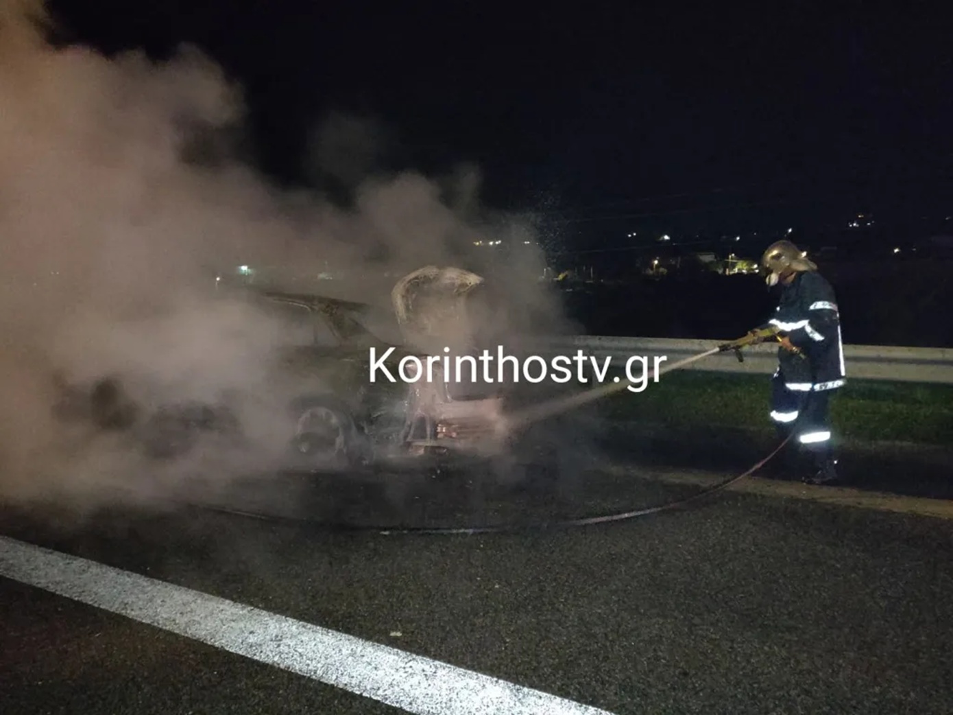 Ένα Ι.Χ. αυτοκίνητο παραδόθηκε στις φλόγες στον αυτοκινητόδρομο Αθηνών – Κορίνθου, κοντά στον Προαστιακό Κορίνθου το βράδυ της Τρίτης.