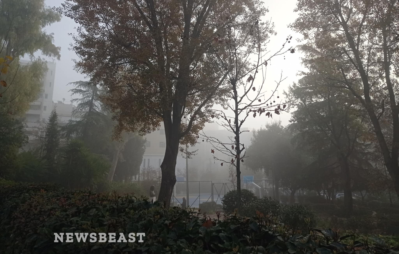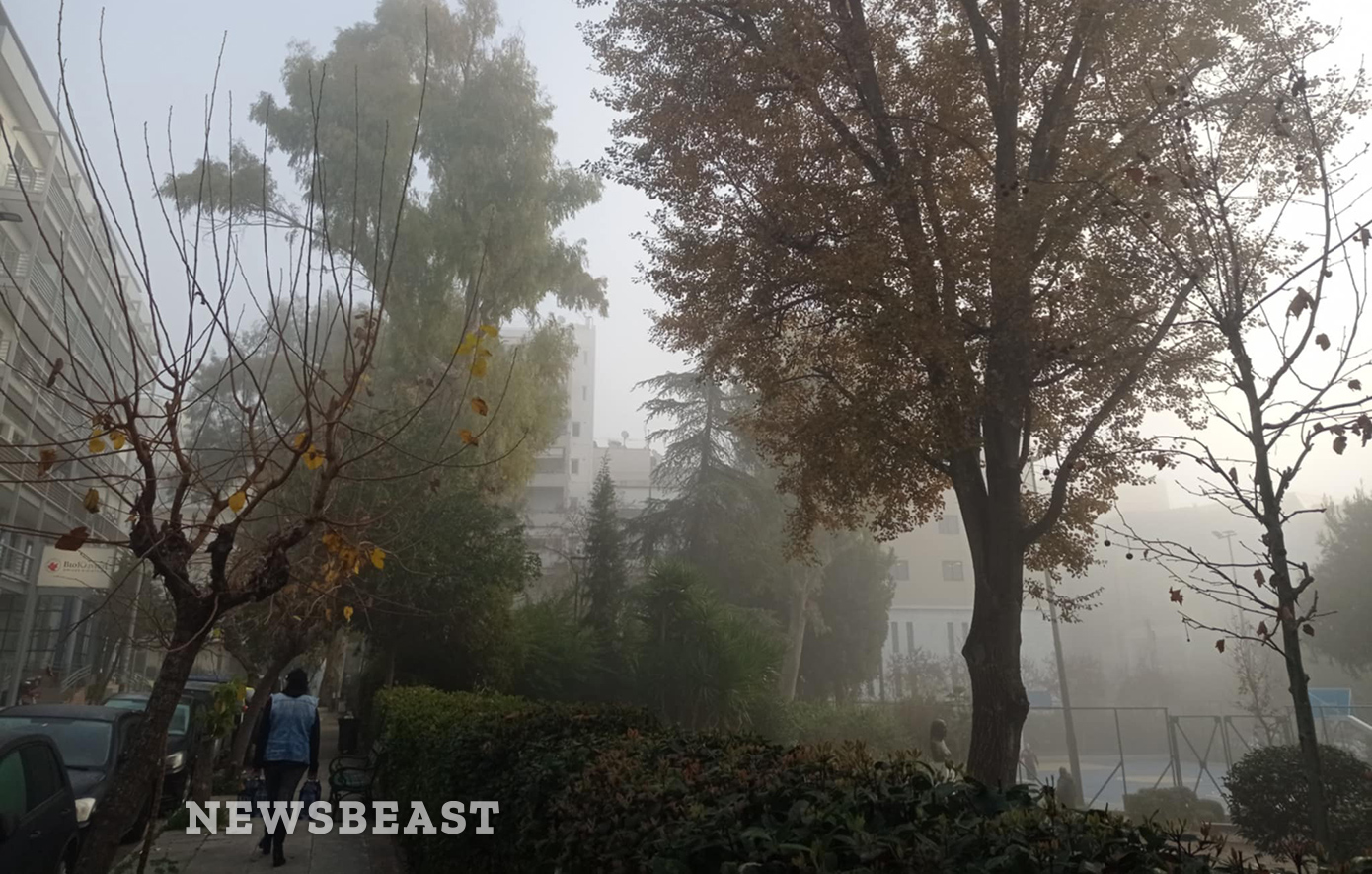 Φωτογραφίες από το πυκνό πέπλο ομίχλης δημοσίευσαν στο X και χρήστες του.