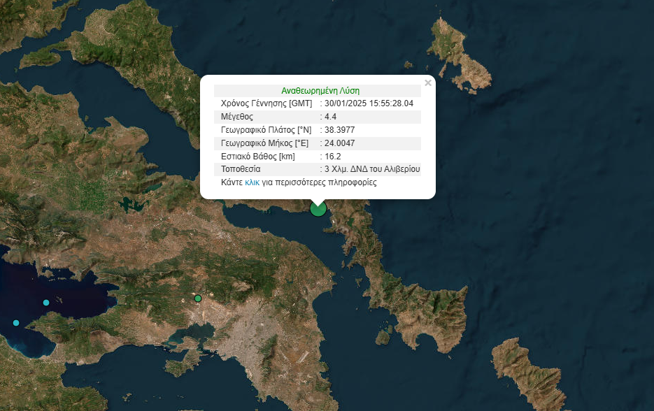 Ο σεισμός μεγέθους 4,4 Ρίχτερ είχε επίκεντρο 3 χιλιομέτρα δυτικά-νοτιοδυτικά του Αλιβερίου και το εστιακό βάθος, σύμφωνα με το Γεωδυναμικό Ινστιτούτο, υπολογίζεται στα 16,2 χιλιόμετρα.