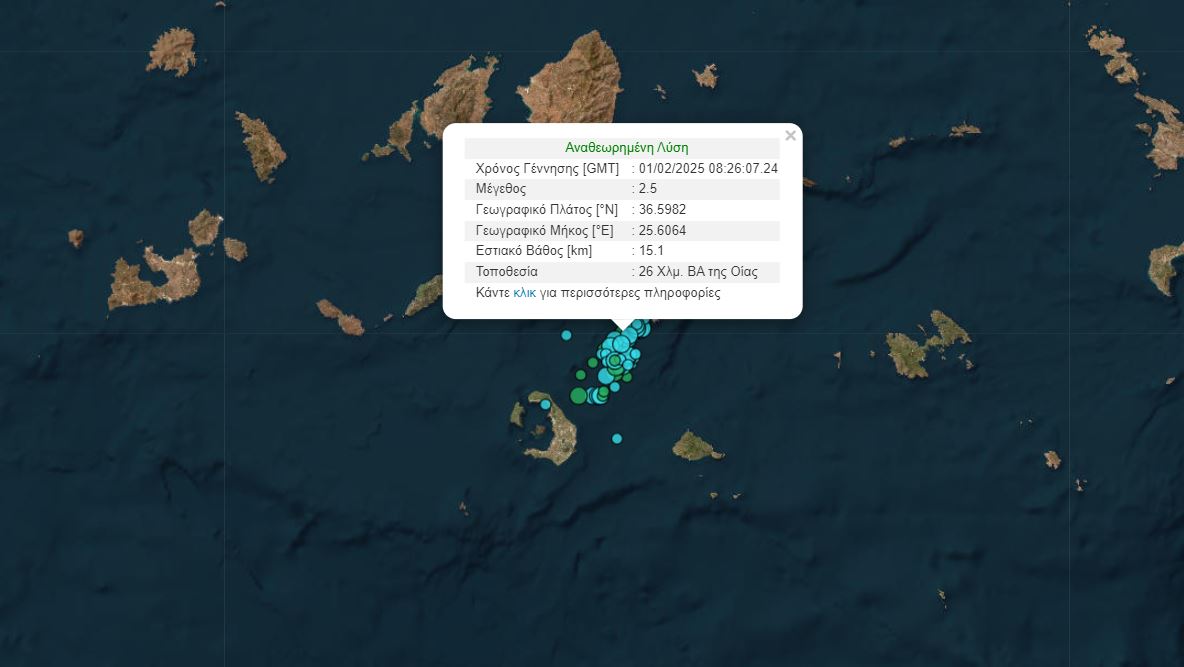 Δύο σεισμικές δονήσεις με απόσταση λίγων λεπτών σημειώθηκαν σε Αμοργό και Σαντορίνη το πρωί του Σαββάτου.