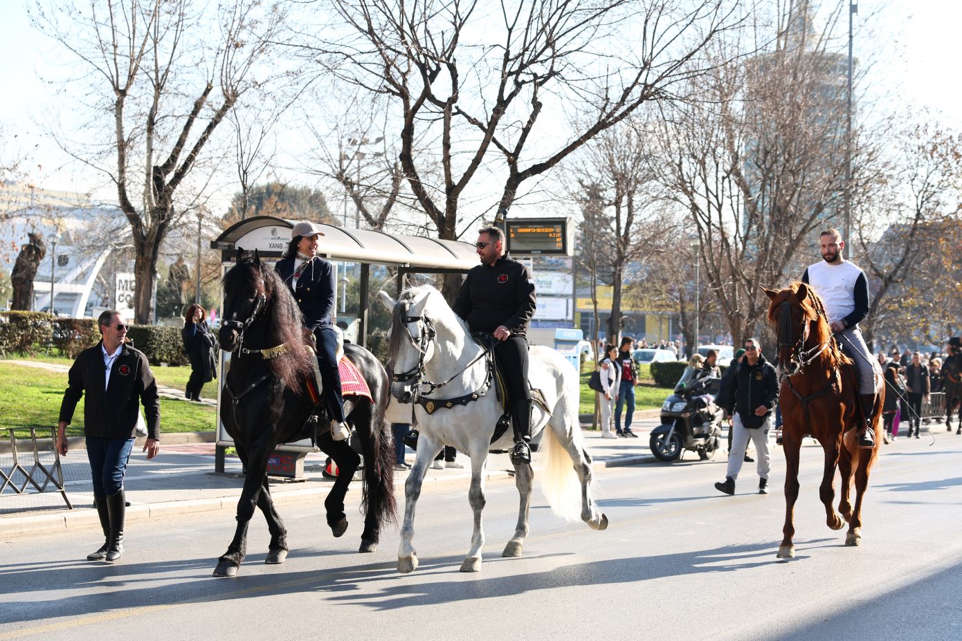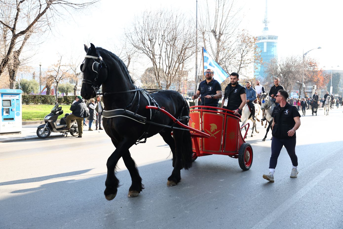 Βόλτα στην Τσιμισκή έκαναν πανύψηλα άλογα, άλλα με αναβάτες και άλλα σέρνοντας άμαξες, προσφέροντας ένα μοναδικό θέαμα. Κατευθυνόμενα από τη νότια πύλη της Διεθνούς Εκθέσεως και με τελικό προορισμό το άγαλμα του Μεγάλου Αλεξάνδρου τα ζώα χλιμίντρισαν και κάλπασαν στους κεντρικούς δρόμους της Θεσσαλονίκης μαγνητίζοντας τα βλέμματα των περαστικών αλλά και των οδηγών.