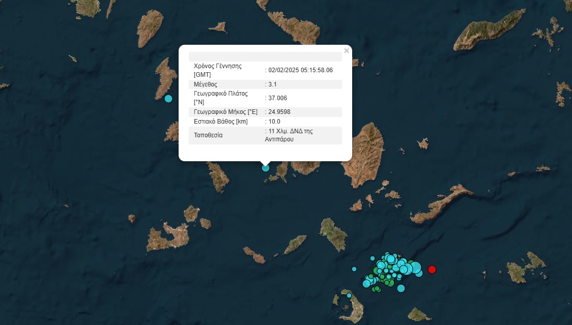 Σεισμική δόνηση μεγέθους 3,1 Ρίχτερ σημειώθηκε το πρωί της Κυριακής στην Αντίπαρο
