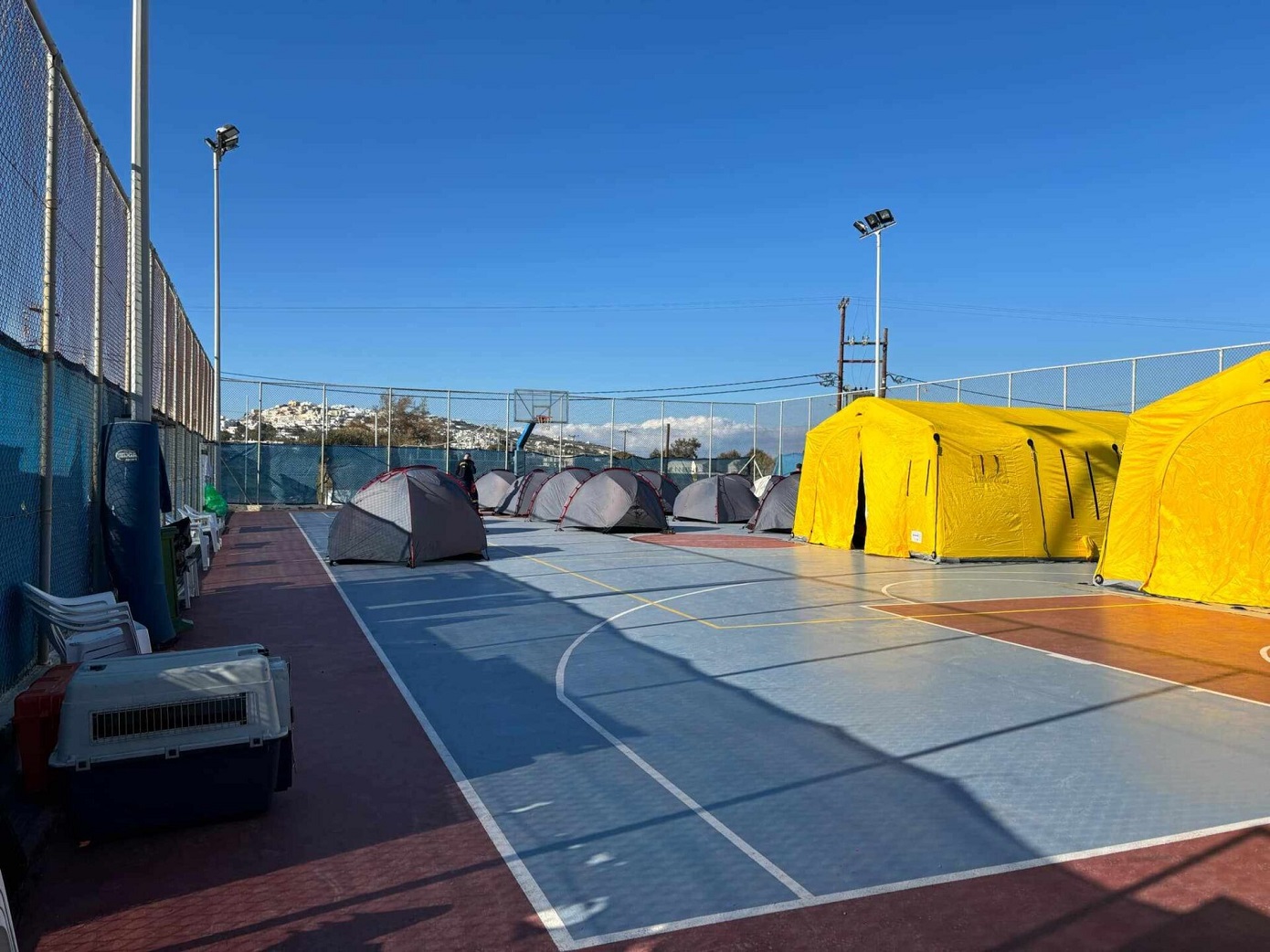 Σύμφωνα με το cyclades24 οι σκηνές που έχουν στηθεί στο γήπεδο προορίζονται αποκλειστικά για τη διαμονή και τις επιχειρησιακές ανάγκες της ΕΜΑΚ, η οποία βρίσκεται σε ετοιμότητα για οποιοδήποτε ενδεχόμενο.
