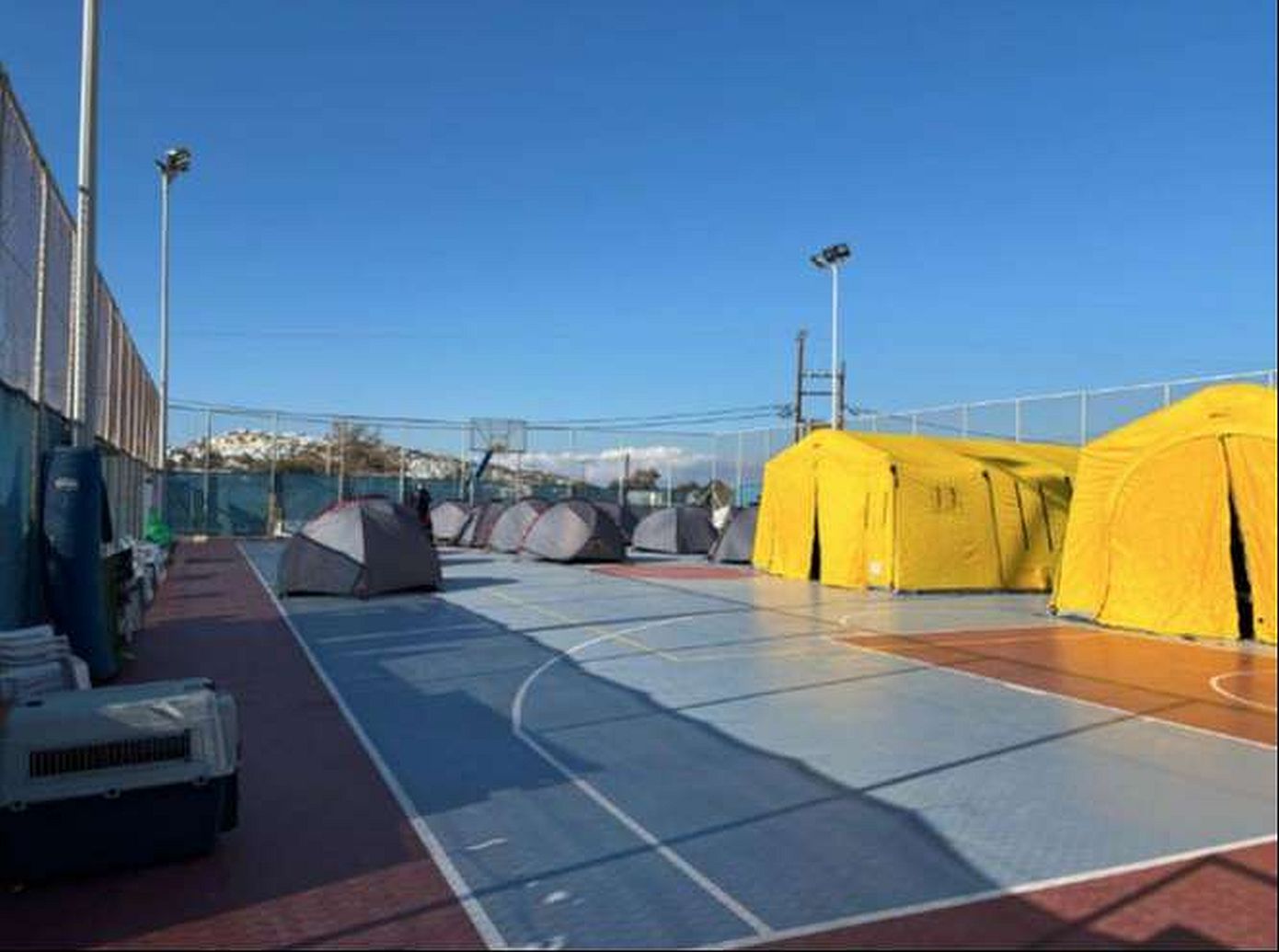 Η ομάδα έχει μεταφερθεί στο νησί στο πλαίσιο προληπτικών μέτρων λόγω της σεισμικής δραστηριότητας που παρατηρείται στην περιοχή το τελευταίο διάστημα. Οι σκηνές που έχουν στηθεί στο γήπεδο προορίζονται αποκλειστικά για τη διαμονή και τις επιχειρησιακές ανάγκες της ΕΜΑΚ, η οποία βρίσκεται σε ετοιμότητα για οποιοδήποτε ενδεχόμενο.