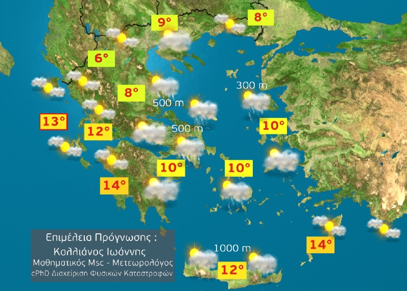 Οι θερμοκρασίες μέσα στο Σαββατοκύριακο θα φτάσουν στους 6-8°C στα Βόρεια και στους 10-14°C στα Κεντρικά και Βόρεια.