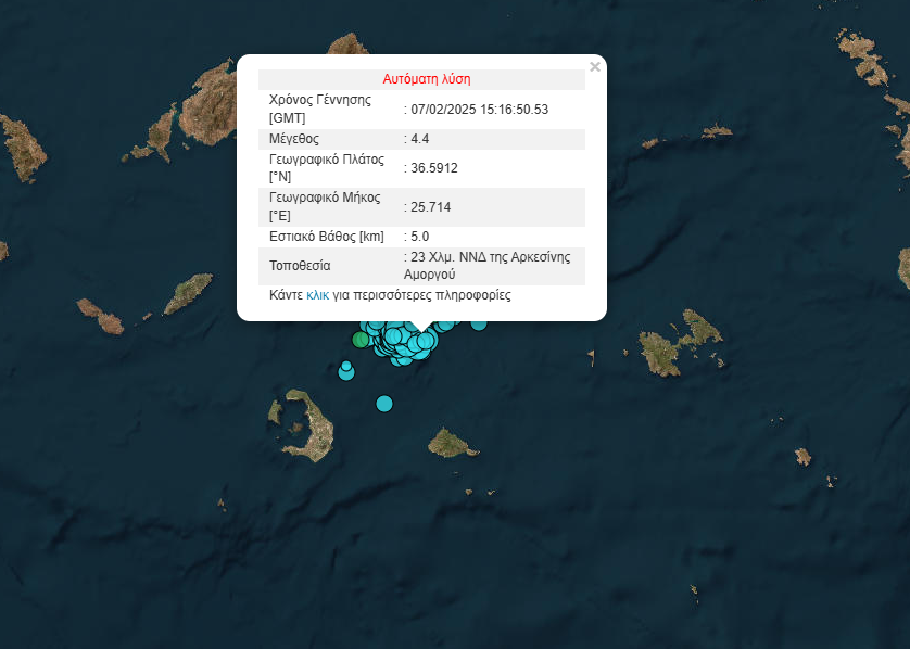 Ο σεισμός σημειώθηκε 23 χιλιόμετρα νοτιοδυτικά της Αρκεσίνης Αμοργού.