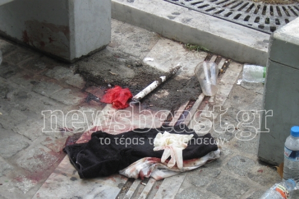 Μία περίπου ώρα μετά τον ξυλοδαρμό που αμαύρωσε την σημερινή κινητοποίηση. Δείτε τι απέμεινε στο σημείο «μηδέν»…