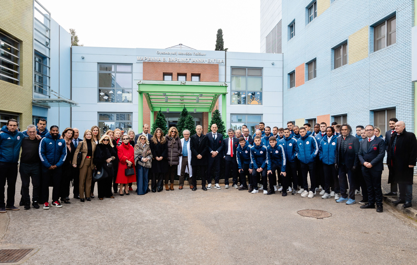 Σύσσωμη η ομάδα του Ολυμπιακού επισκέφθηκε την Ογκολογική Μονάδα Παίδων «Μαριάννα Β. Βαρδινογιάννη – ΕΛΠΙΔΑ», προσφέροντας χαμόγελα και αισιοδοξία στα παιδιά που νοσηλεύονται.
