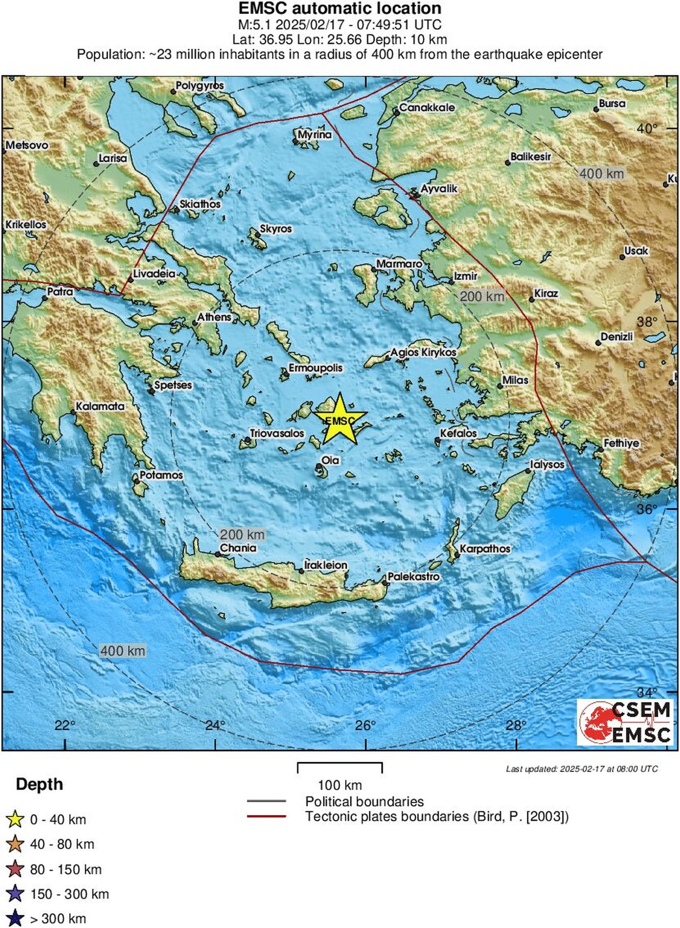 Κατά το χρονικό διάστημα μεταξύ της 26ης Ιανουαρίου και της Παρασκευής 14ης Φεβρουαρίου καταγράφτηκαν πάνω από 16.900 σεισμοί μεγέθους άνω του ενός βαθμού στη ζώνη μεταξύ Αμοργού και Σαντορίνης, σύμφωνα με το Εργαστήριο Σεισμολογίας του Εθνικού και Καποδιστριακού Πανεπιστημίου της Αθήνας (ΕΚΠΑ).