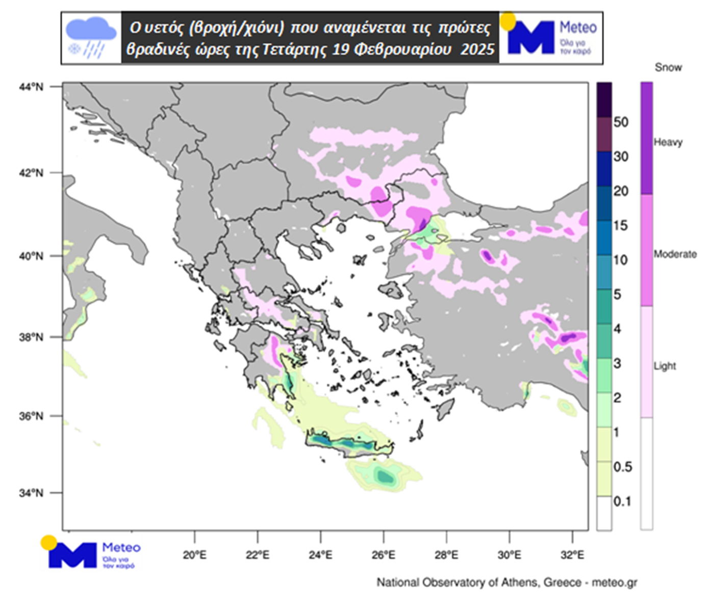 Καιρός: Νεφώσεις παροδικά αυξημένες με σποραδικές βροχές στην Κρήτη και βροχές μικρής διάρκειας στις Κυκλάδες. Χιονοπτώσεις θα σημειωθούν στα ορεινά της Κρήτης από τις βραδινές ώρες.