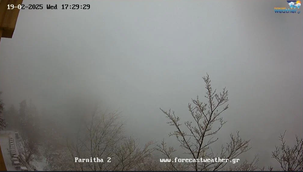 Νιφάδες χιονιού πέφτουν και σε περιοχές των Αφιδνών αλλά και στην περιοχή γύρω από τα πρώην βασιλικά κτήματα στο Τατόι.