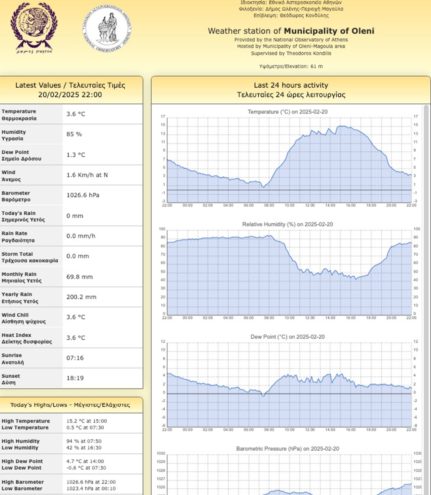 Θερμοκρασία: Από 04 έως 13 βαθμούς Κελσίου. Στο εσωτερικό της Ηπείρου 3 με 5 βαθμούς χαμηλότερη.