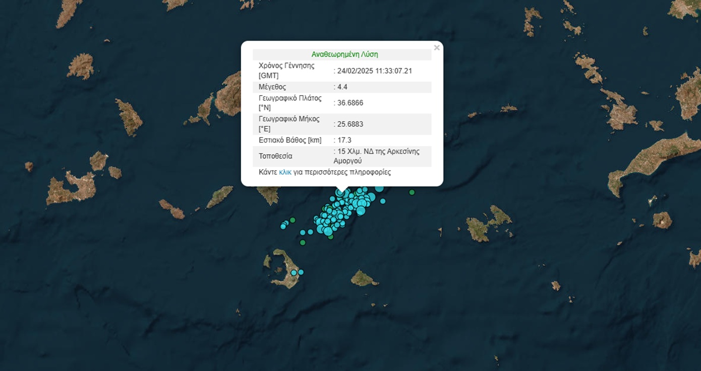 Σεισμός 4,4 βαθμών της κλίμακας Ρίχτερ σημειώθηκε το μεσημέρι της Δευτέρας (24/02) στη Σαντορίνη και πιο συγκεκριμένα στο σημείο που εκδηλώνεται η σεισμική έξαρση το τελευταίο διάστημα.