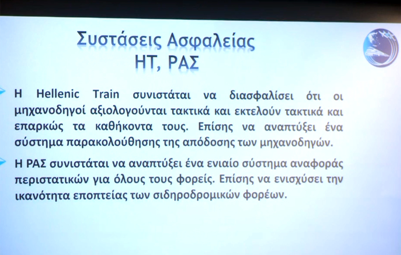 - Δεν υπήρχε διαθέσιμη διαδικασία εντός της Hellenic Train για τη συστηματική παρακολούθηση της απόδοδσης των μηχανοδηγών και για τη συνεχή εκπαίδευσή τους στις επικοιωνίες.