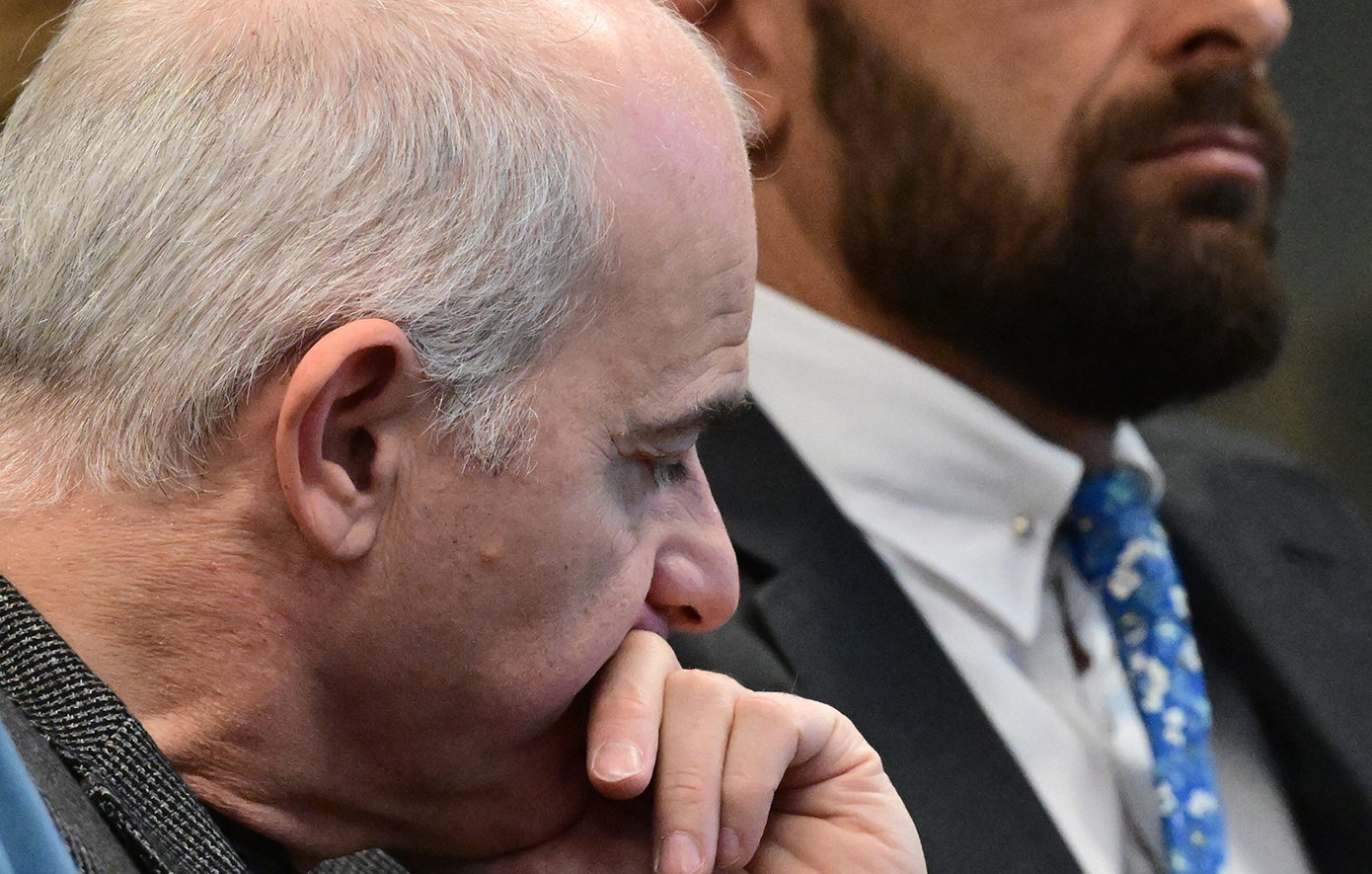 Ο φωτογραφικός φακός κατέγραψε τη στιγμή που, φανερά συντετριμμένος, κρατούσε το κεφάλι του, ακούγοντας το πόρισμα που ρίχνει φως στις συνθήκες της ανείπωτης τραγωδίας.