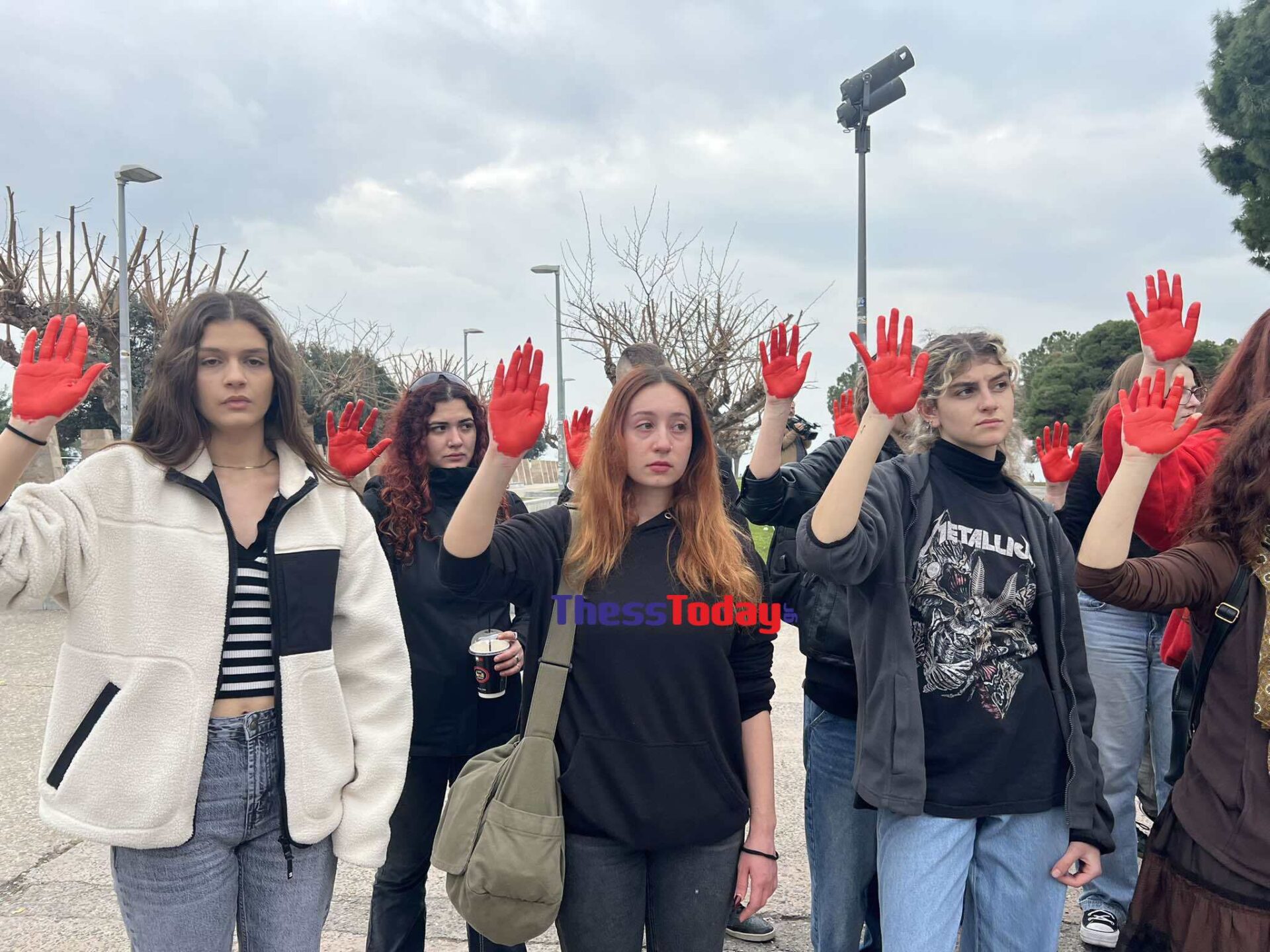 57 φοιτητές, όσα και τα θύματα της τραγωδίας, έβαψαν τις παλάμες τους κόκκινες και έγραψαν με κόκκινη μπογιά τα ονόματα των θυμάτων στην περιοχή γύρω από τον Λευκό Πύργο.