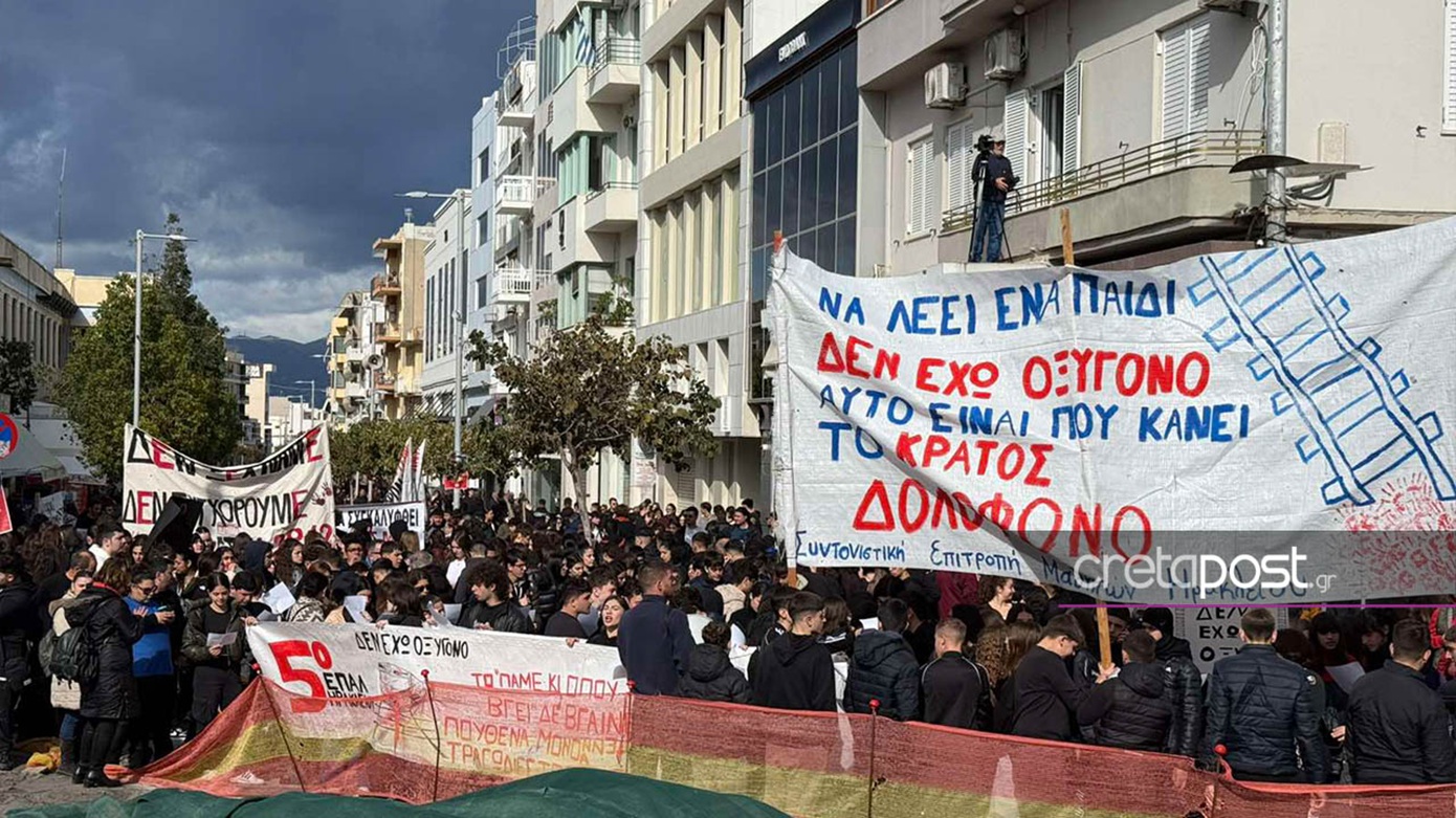 Σύμφωνα με το cretapost οκογένειες με μικρά παιδιά, μαθητές από όλα τα σχολεία του Ηρακλείου και σύσσωμοι οι φορείς της πόλης άρχισαν να συγκεντρώνονται σταδιακά στην πλατεία Ελευθερίας.