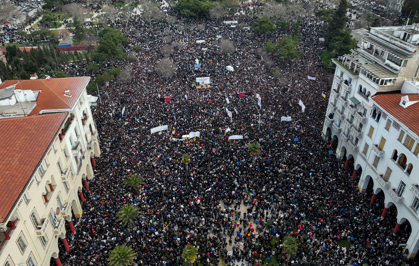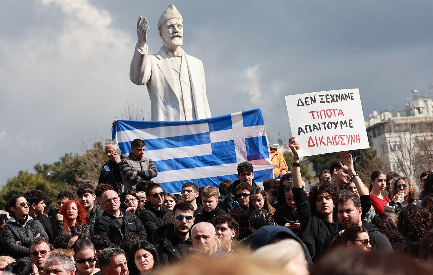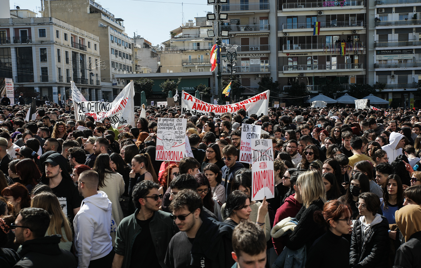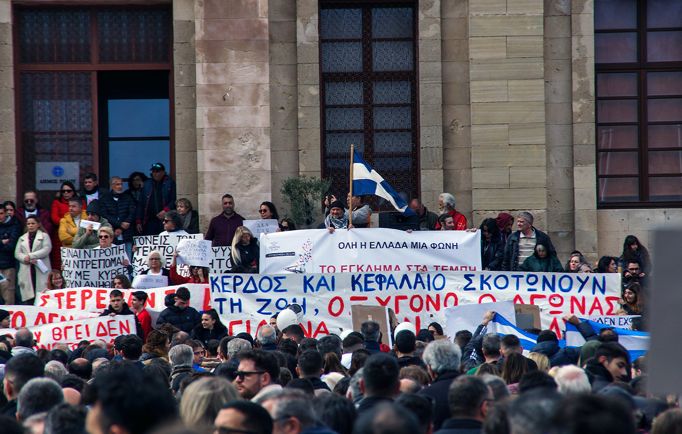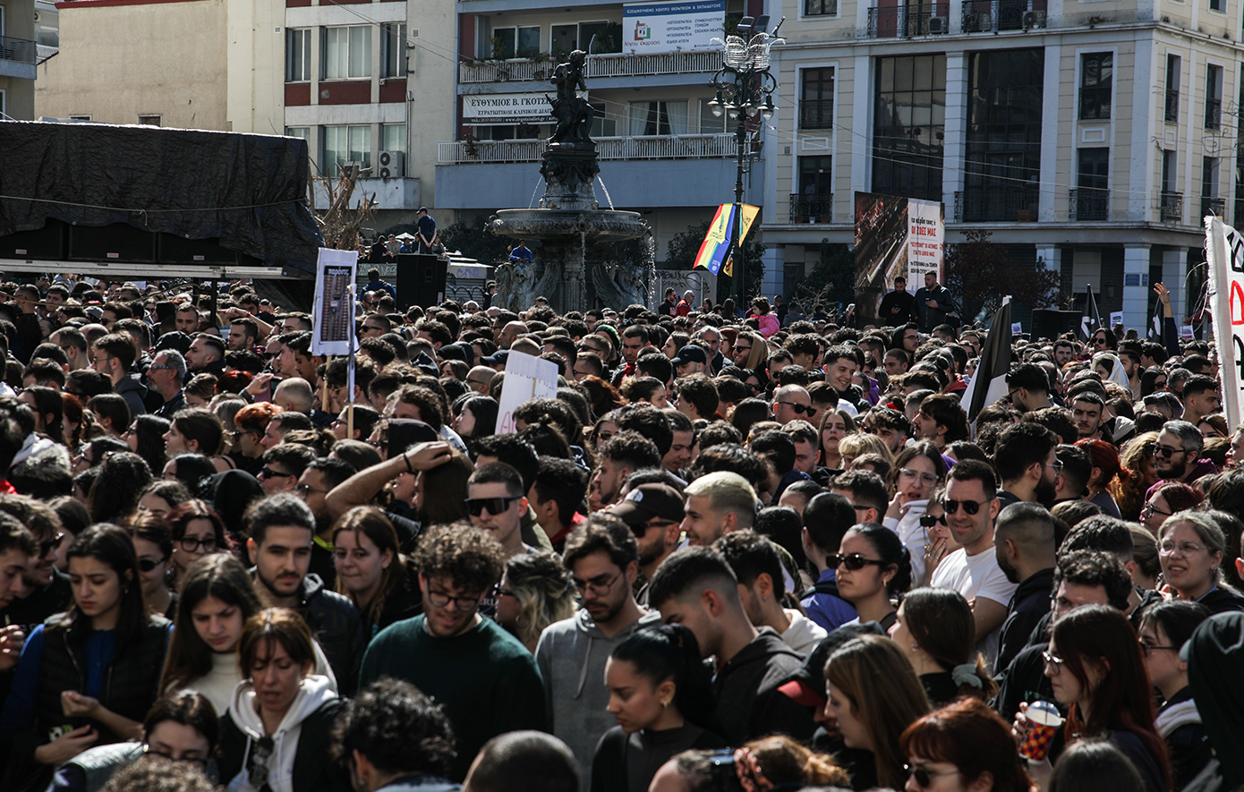 Χιλιάδες κόσμου κατέκλυσαν την Πλατεία Δημαρχείου για να τιμήσουν τη μνήμη των ανθρώπων που έχασαν τη ζωή τους το μοιραίο βράδυ της 28ης Φεβρουαρίου του 2023.