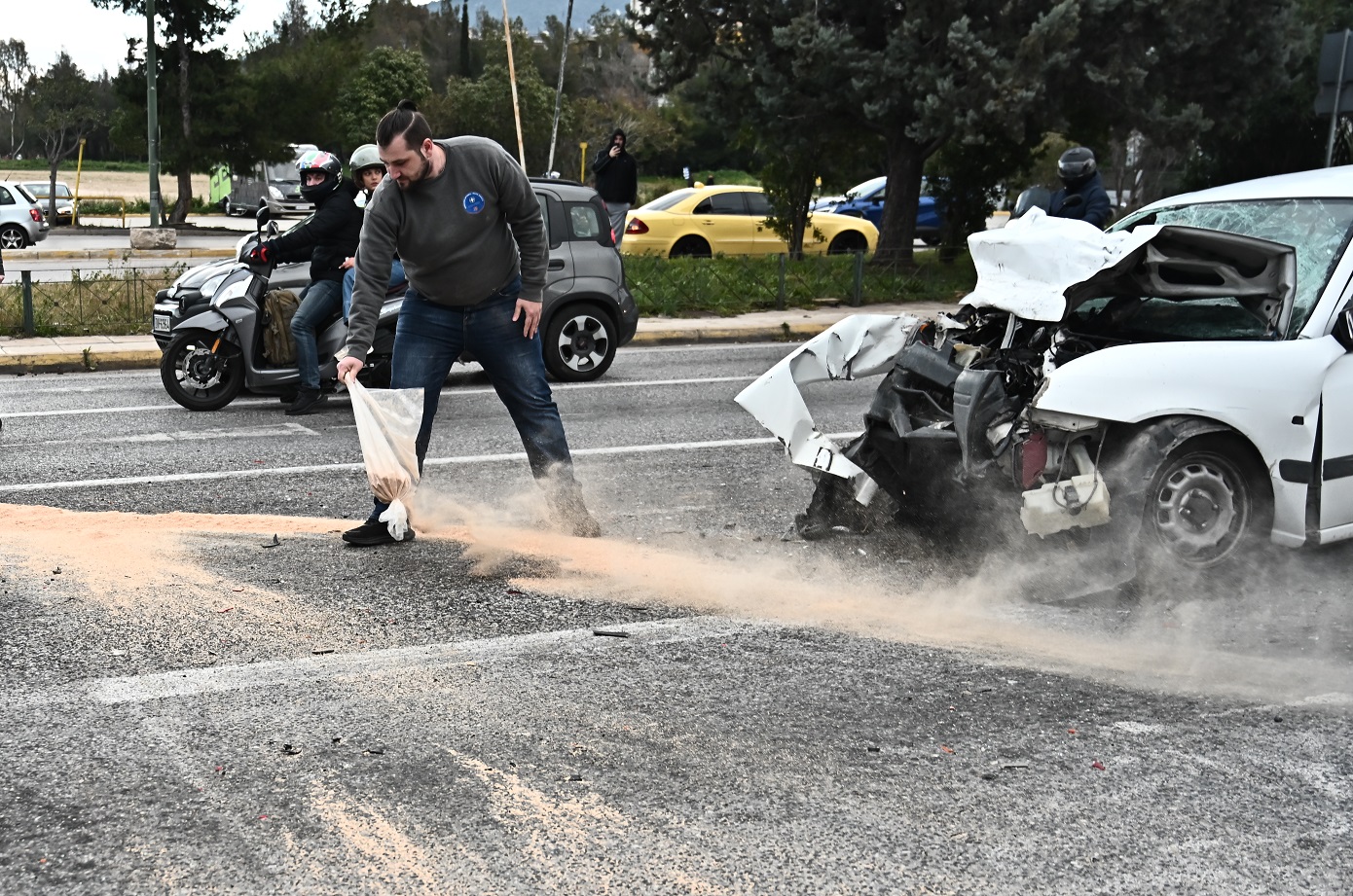Το λευκό όχημα που οδηγούσε ο ηλικιωμένος φαίνεται πως έπεσε στο προπορευόμενο ταξί και αυτό με την σειρά του στο επόμενο. Από το ταξί απομακρύνθηκαν τραυματίες δύο επιβαίνοντες που είχαν τις αισθήσεις τους και ένας ακόμη από το τρίτο όχημα και μεταφέρθηκαν στο Νοσοκομείο Γεννηματάς.