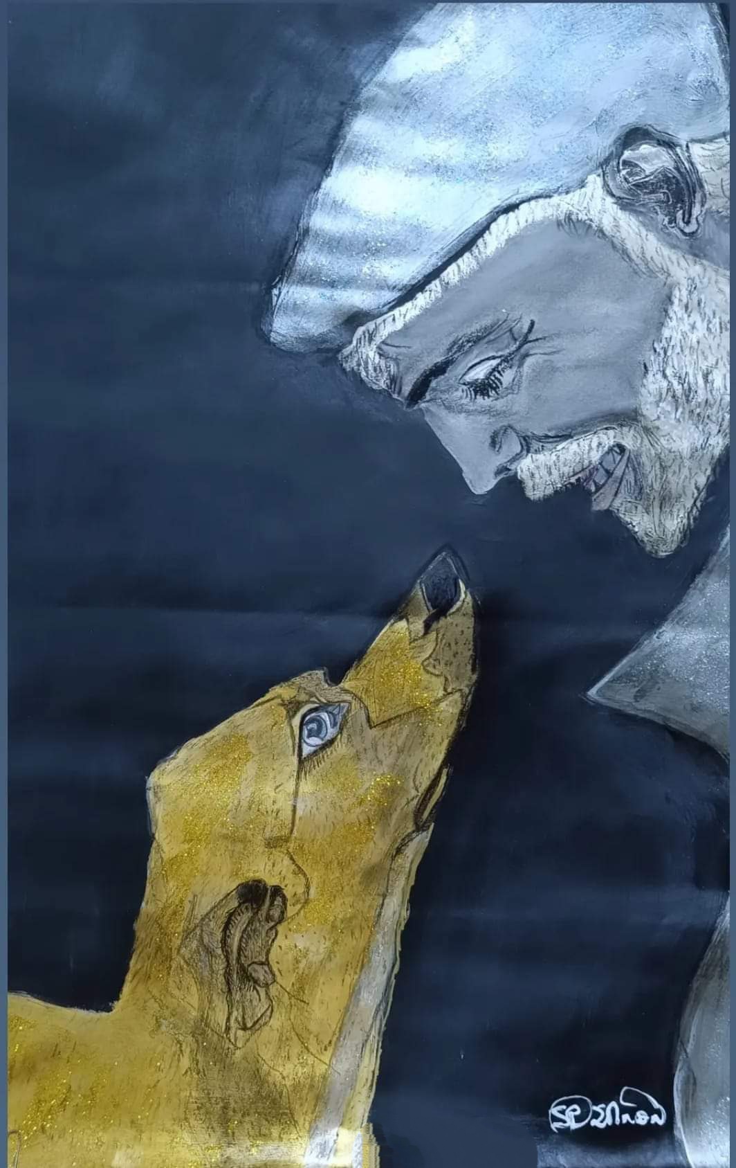 Σ: Μέσα από τα πορτρέτα των αντρών που φτιάχνω θέλω να εκφράσω το πάθος που κρύβεται στην ψυχή των ανθρώπων. Η ασυμμετρία και η πιο ελεύθερη απεικόνιση των προσώπων στους πίνακες μου, εκφράζουν την επιθυμία μου να μπορέσουμε κάποια στιγμή να ζούμε χωρίς «μη» και «πρέπει». Θέλω μέσα από τη χρήση των ασημί και χρυσών χρωμάτων να μεταφέρω το μήνυμα μιας πιο απελευθερωμένης ζωής χωρίς κανόνες.