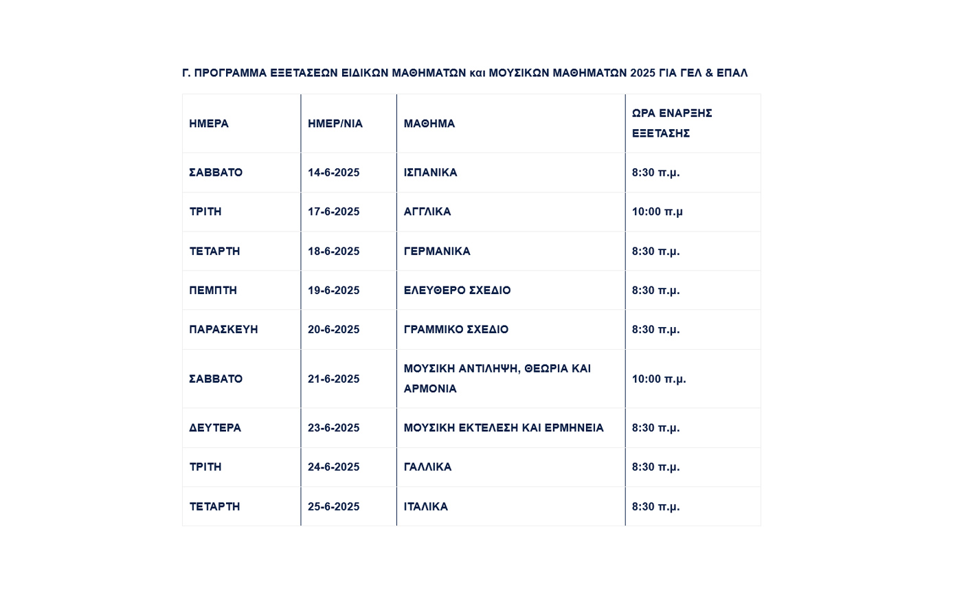 - για το μουσικό μάθημα «Μουσική Αντίληψη, Θεωρία και Αρμονία» η εξέταση συνολικά έχει διάρκεια τρεις (3) ώρες και 30 λεπτά.