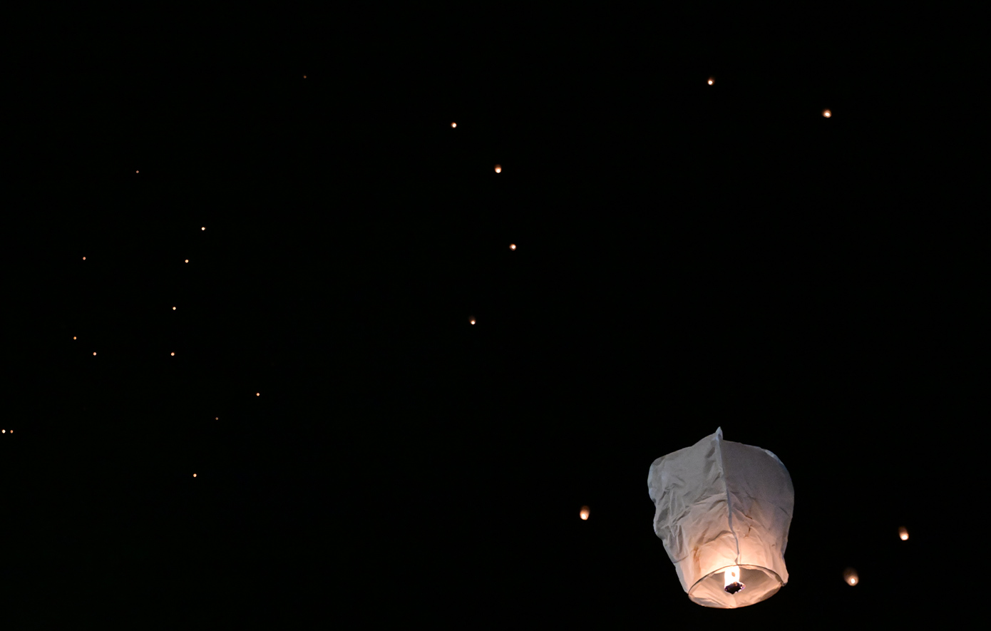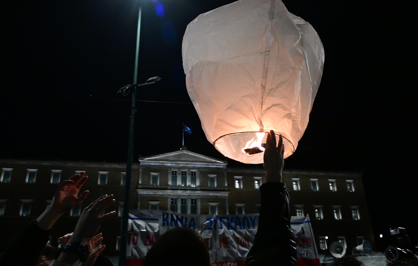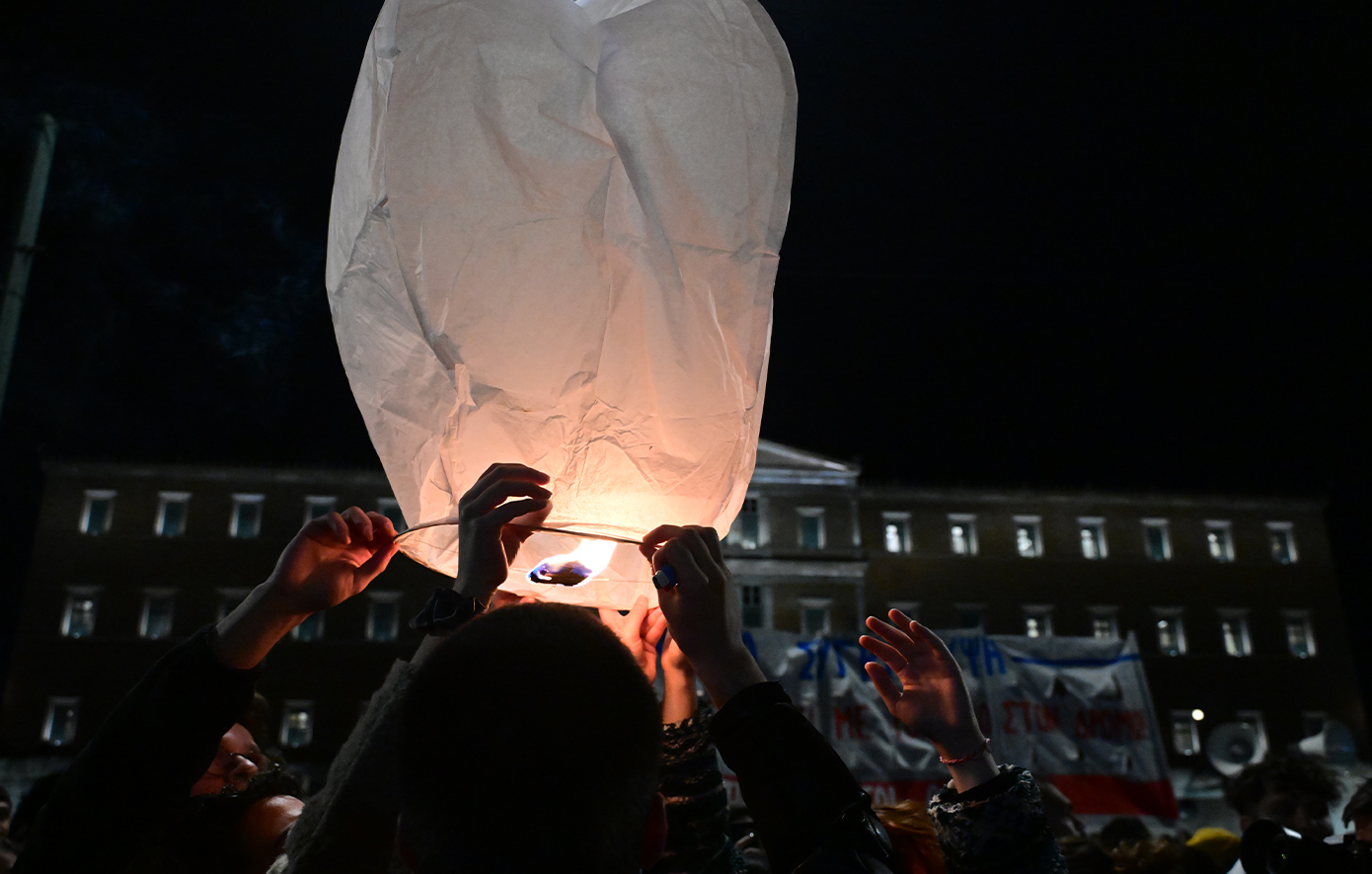 57 φαναράκια στον ουρανό για τα θύματα των Τεμπών