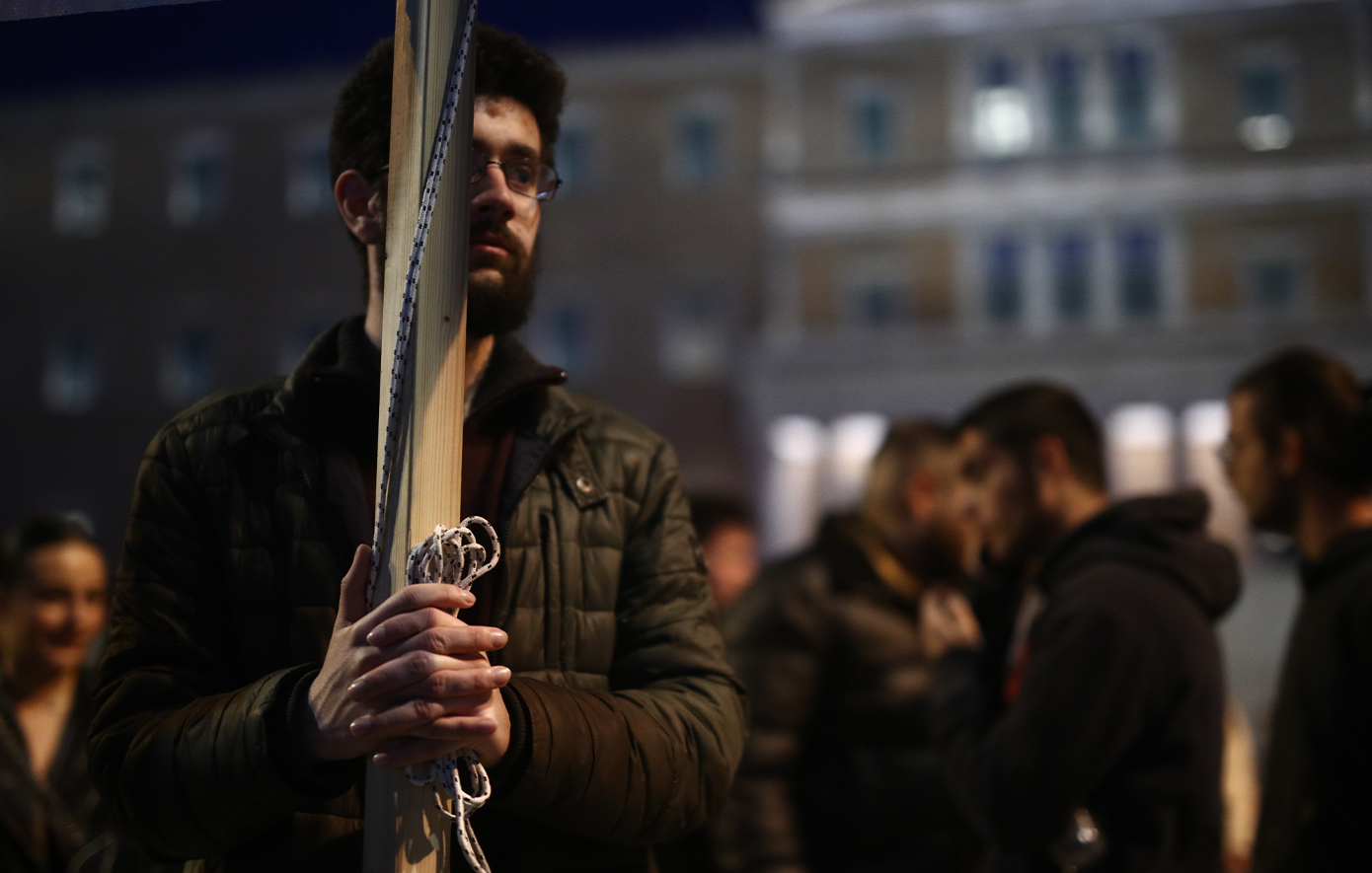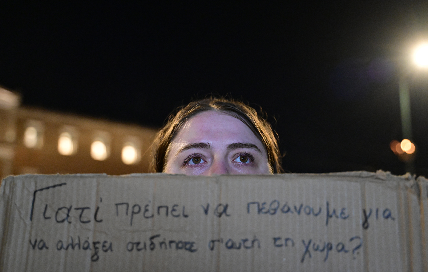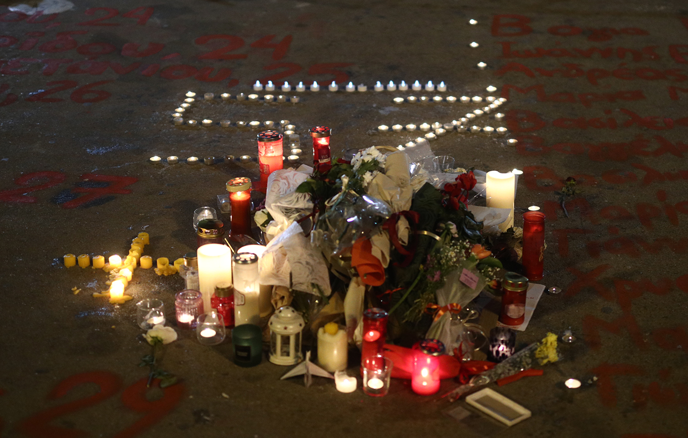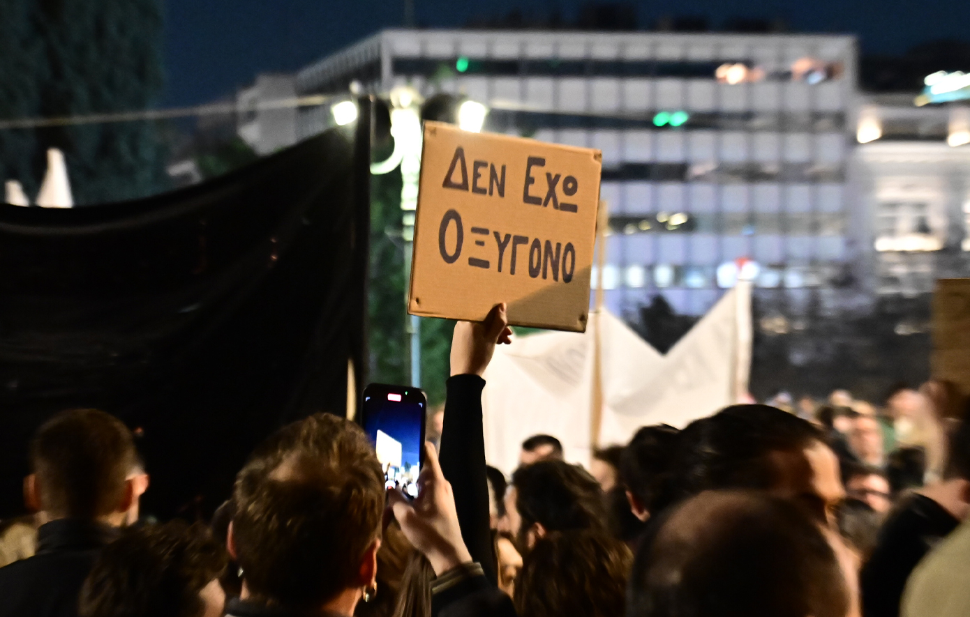 Την ώρα που στη Βουλή συνεχίζεται η συζήτηση ενόψει της ψηφοφορίας επί της πρότασης δυσπιστίας, οι συμμετέχοντες στη συγκέντρωση άρχισαν από νωρίς να συγκεντρώνονται γύρω από την κεντρική εξέδρα της εκδήλωσης και έξω από το Κοινοβούλιο, γύρω από το αυτοσχέδιο «ηρώο» με τα ονόματα των 57 νεκρών, που ήταν στεφανωμένο με ανθοδέσμες