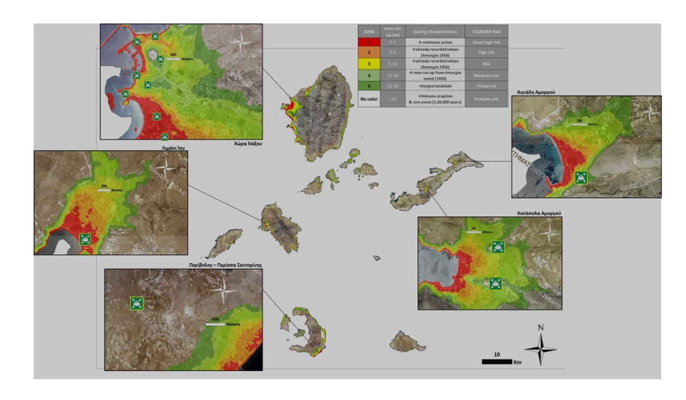 Αναλυτική χαρτογράφηση των περιοχών που ενδέχεται να πληγούν από τσουνάμι στην ευρύτερη περιοχή Σαντορίνης-Αμοργού πραγματοποίησε ομάδα του τμήματος Γεωλογίας και Γεωπεριβάλλοντος του Εθνικού και Καποδιστριακού Πανεπιστημίου Αθηνών, αποτελούμενη από τους/τις υπ. Δρ. Γώγου Μαριλία, υπ. Δρ. Σπύρου Ναυσικά-Ιωάννα, Δρ. Μαυρούλη Σπυρίδωνα, Καθηγήτρια Ευελπίδου Νίκη, Καθηγητή Ευθύμη Λέκκα και Καθηγήτρια Αντωναράκου Ασημίνα. Παράλληλα, η επιστημονική ομάδα αξιολόγησε την καταλληλότητα των υφιστάμενων σημείων συγκέντρωσης που έχουν υποδείξει οι τοπικοί δήμοι.