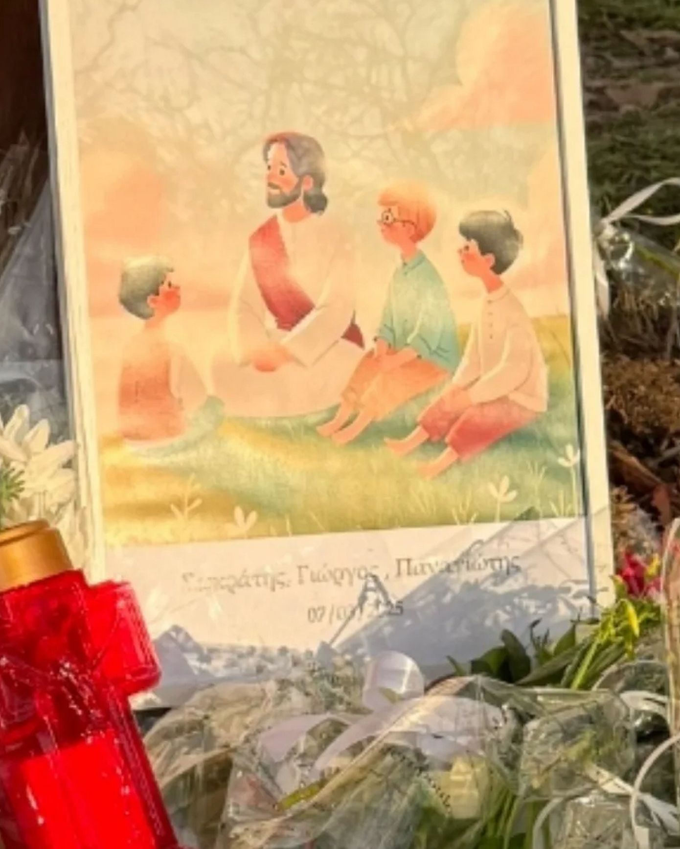 Aνατριχίλα προκαλεί μια εικόνα στην οποία απεικόνιζεται ο Χριστός και γύρω του κάθονται τρία αγόρια. Από κάτω είναι γραμμένα τα ονόματά τους και η ημερομηνία που έχασαν τη ζωή τους.