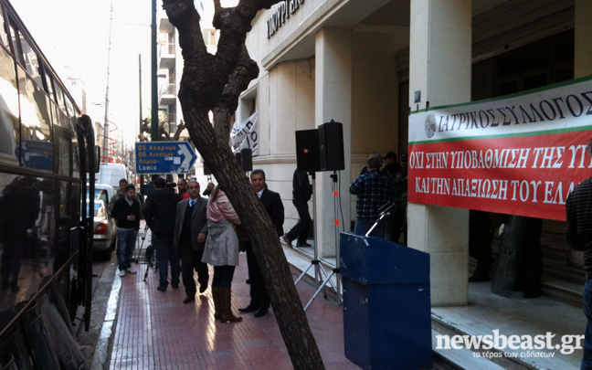 Για τις έντεκα σήμερα το πρωί έχει προγραμματιστεί το συλλαλητήριο διαμαρτυρίας των γιατρών, των μελών του ιατρικού συλλόγου Αθηνών και των συμβασιούχων του ΙΚΑ προς τη Βουλή.