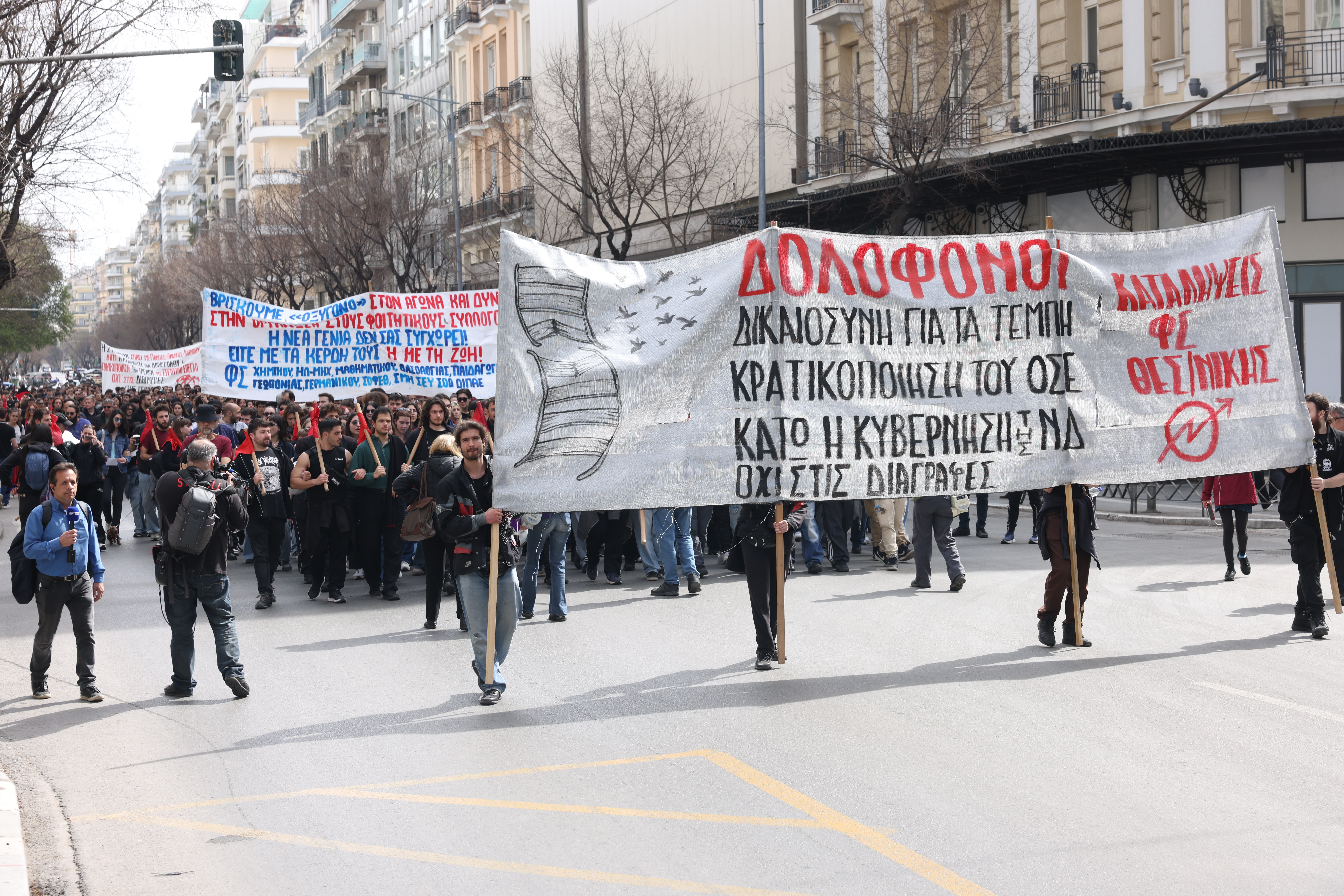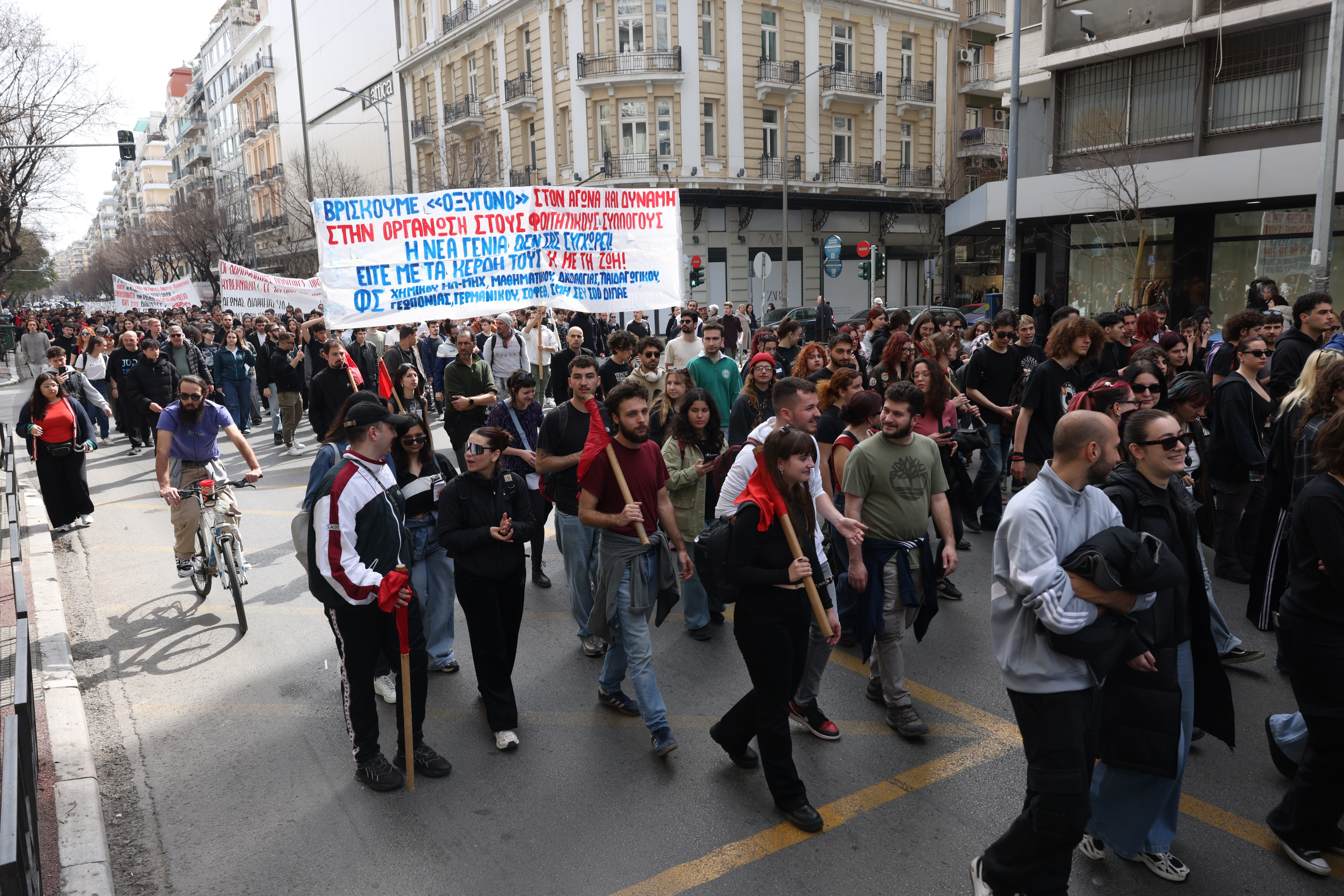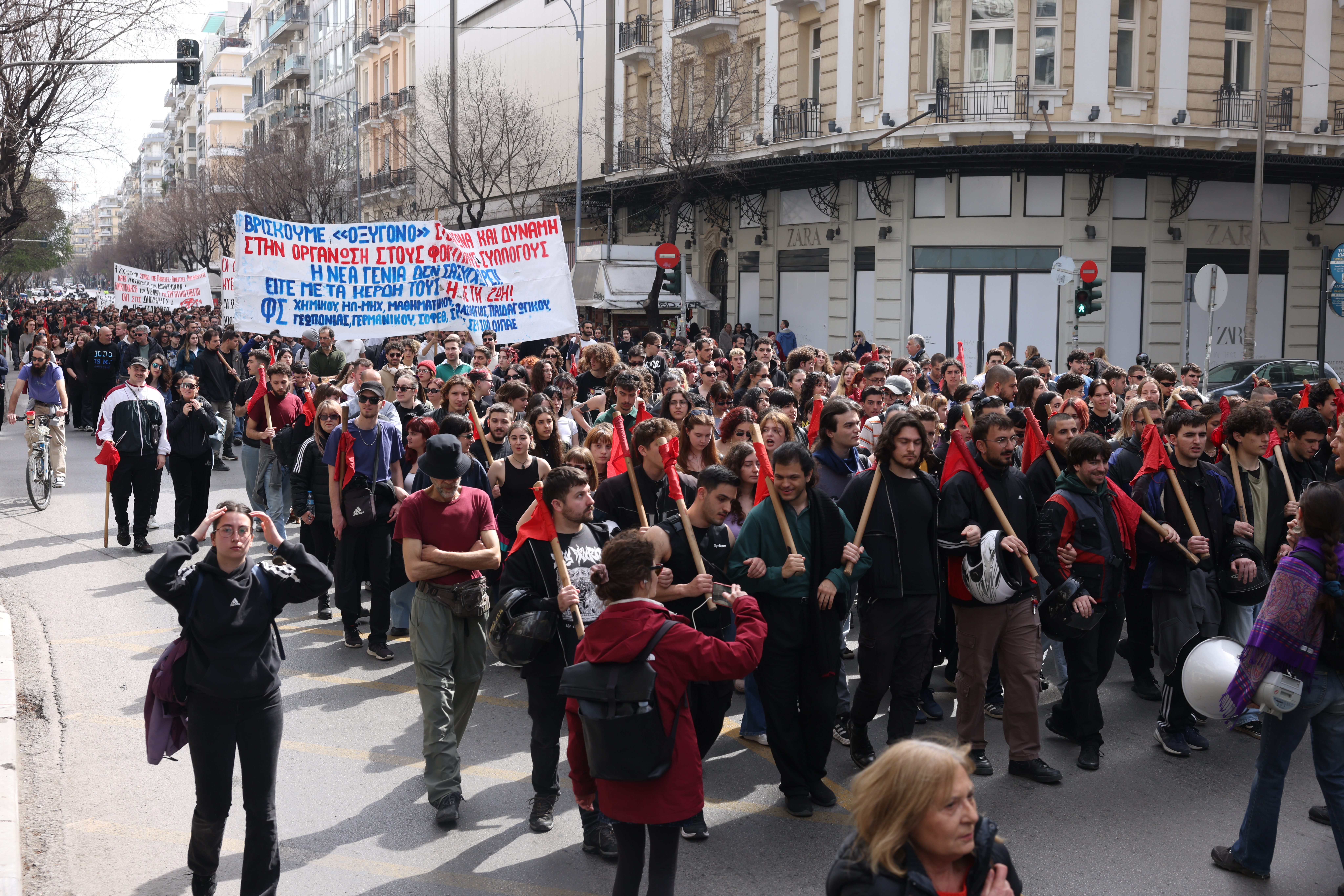 Συγκέντρωση και πορεία διαμαρτυρίας για το δυστύχημα των Τεμπών πραγματοποιήθηκε το μεσημέρι στη Θεσσαλονίκη μετά από κάλεσμα φοιτητικών συλλόγων.
