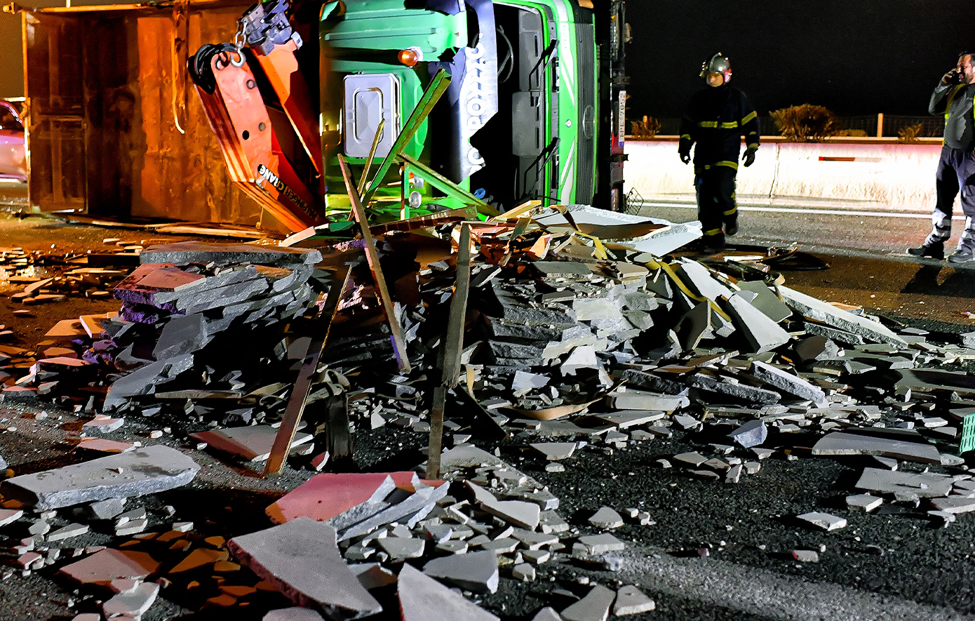 Ανατροπή νταλίκας σημειώθηκε, το απόγευμα της Πέμπτης, στο 65ο χιλιόμετρο της νέας εθνικής οδού Αθηνών – Κορίνθου.