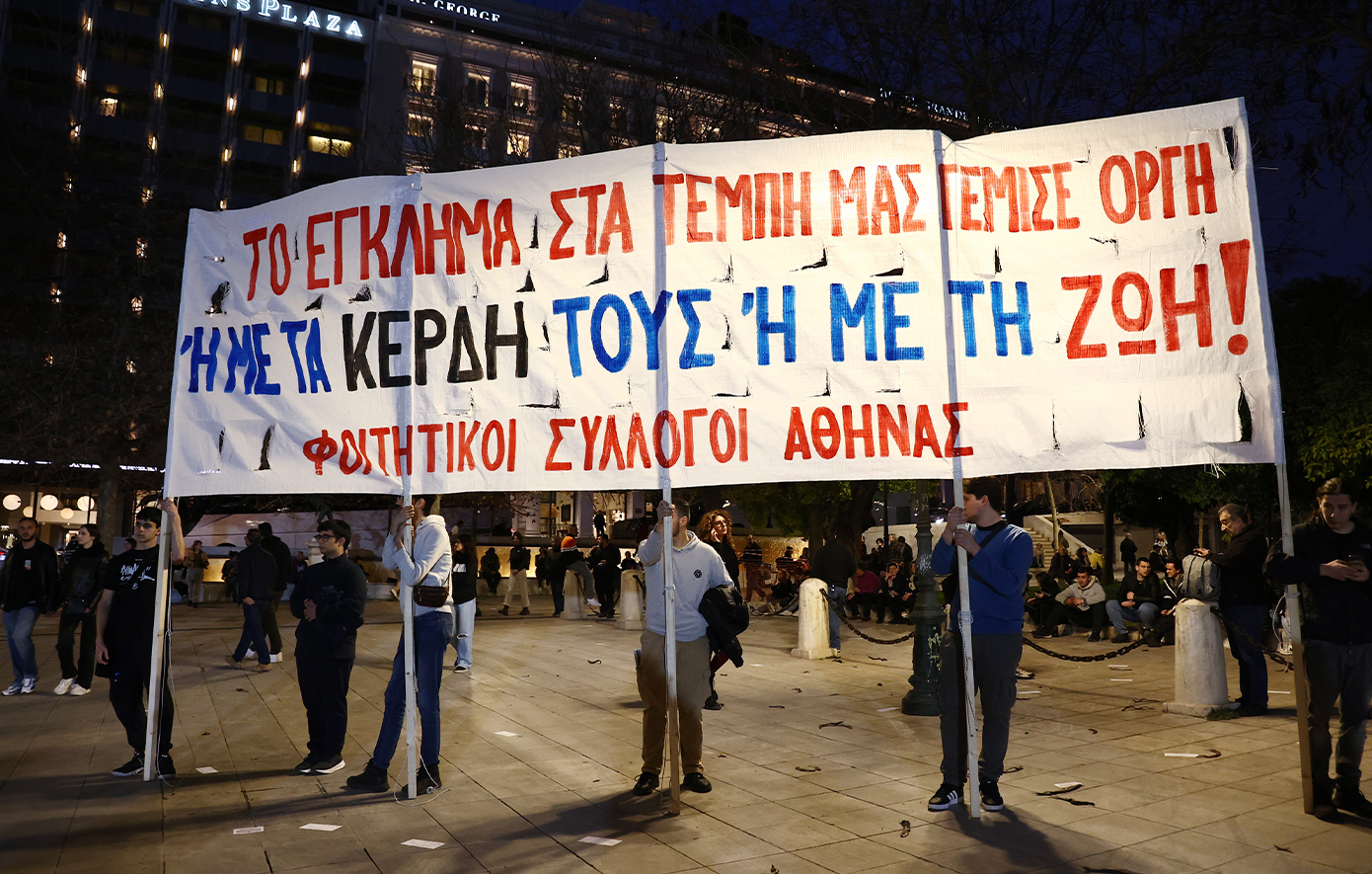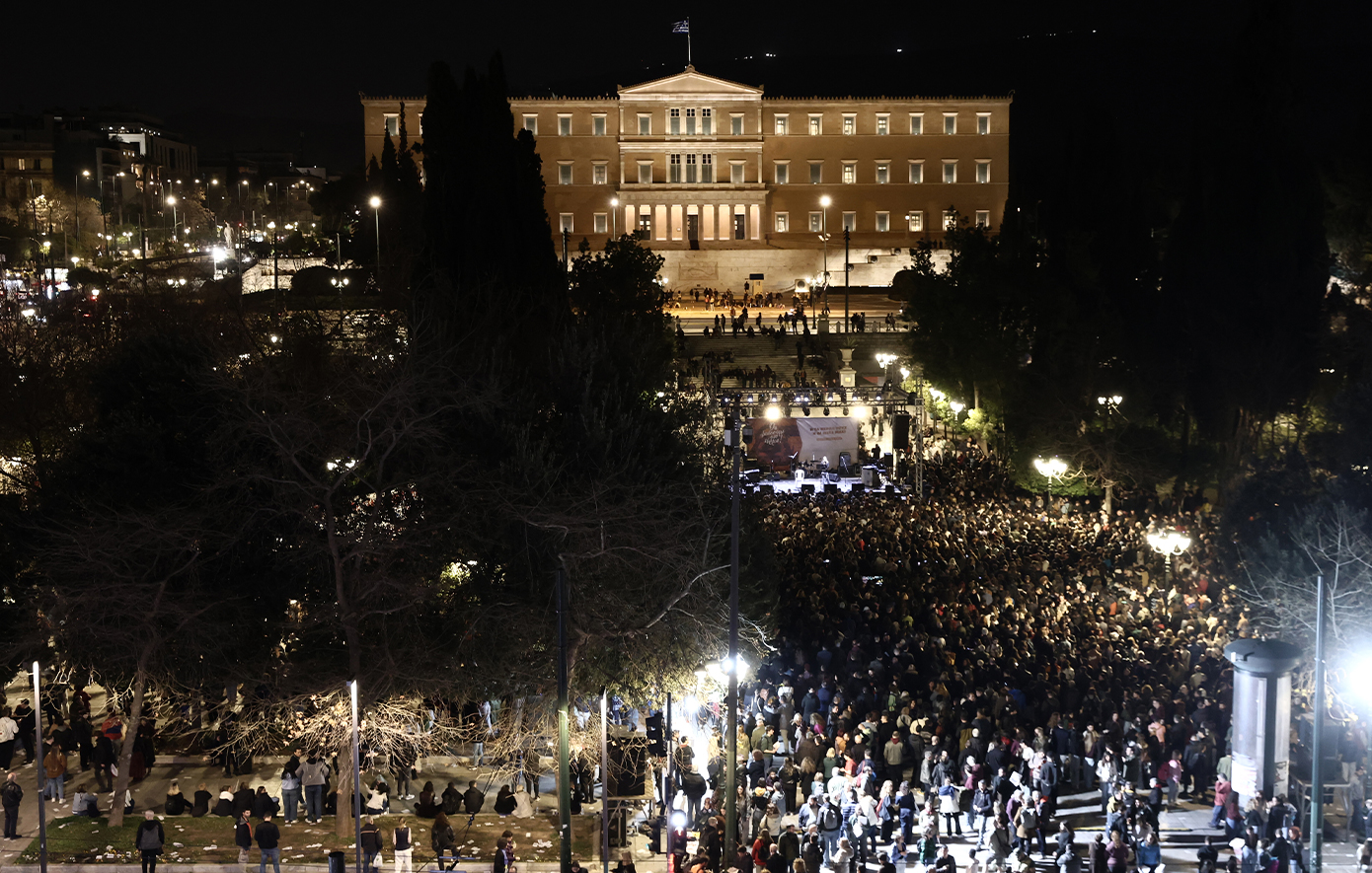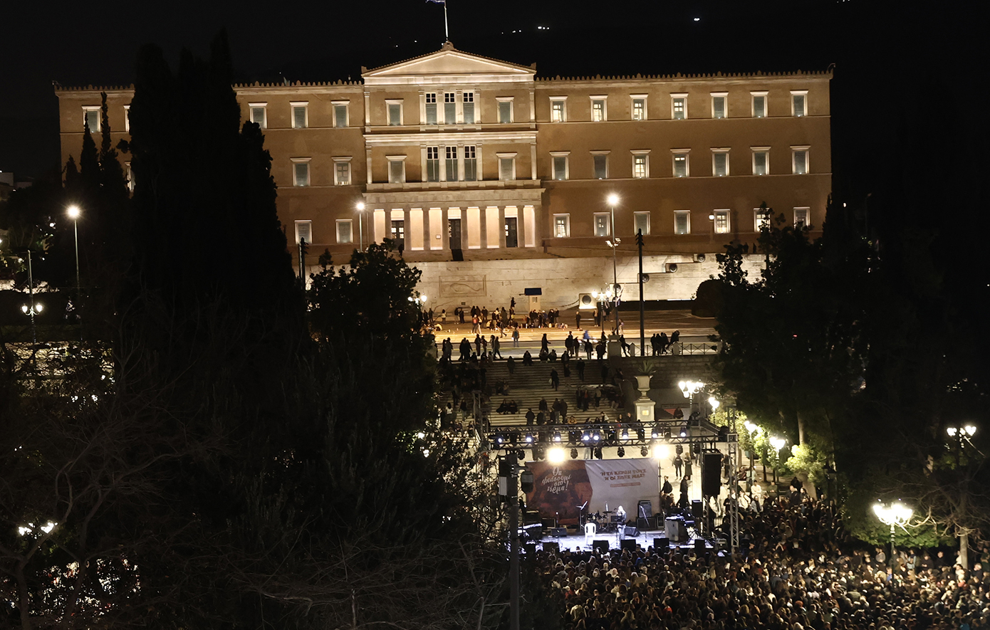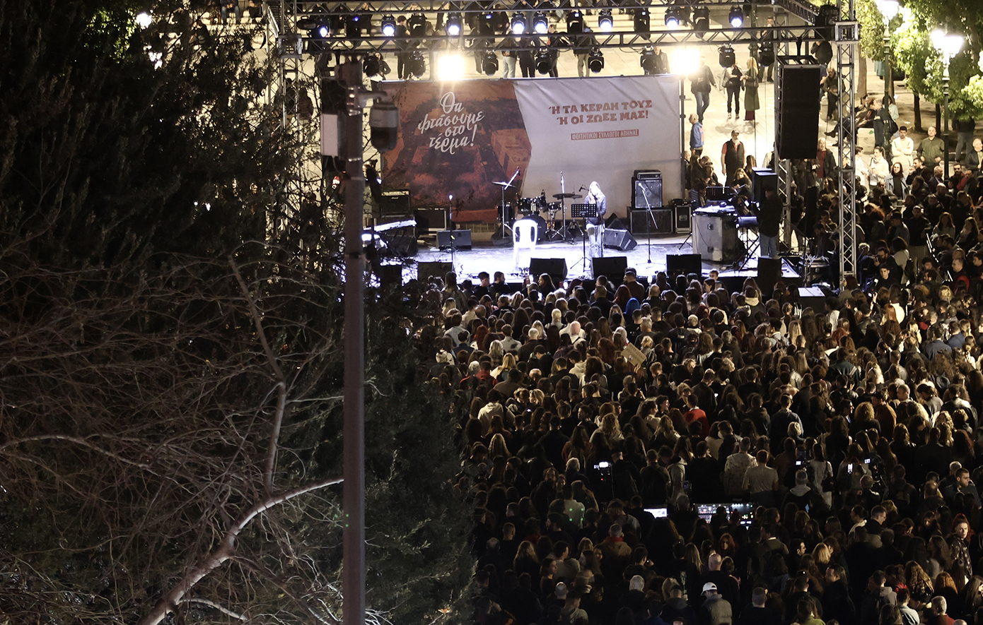 Με συναυλία στην Πλατεία Συντάγματος κορυφώνεται σήμερα η κινητοποίηση των Φοιτητικών Συλλόγων Αθήνας, οι οποίοι είχαν πραγματοποιήσει το μεσημέρι συλλαλητήριο στα Προπύλαια. Αίτημα των φοιτητών είναι η απόδοση δικαιοσύνης σε ό,τι αφορά το σιδηροδρομικό δυστύχημα στα Τέμπη.
