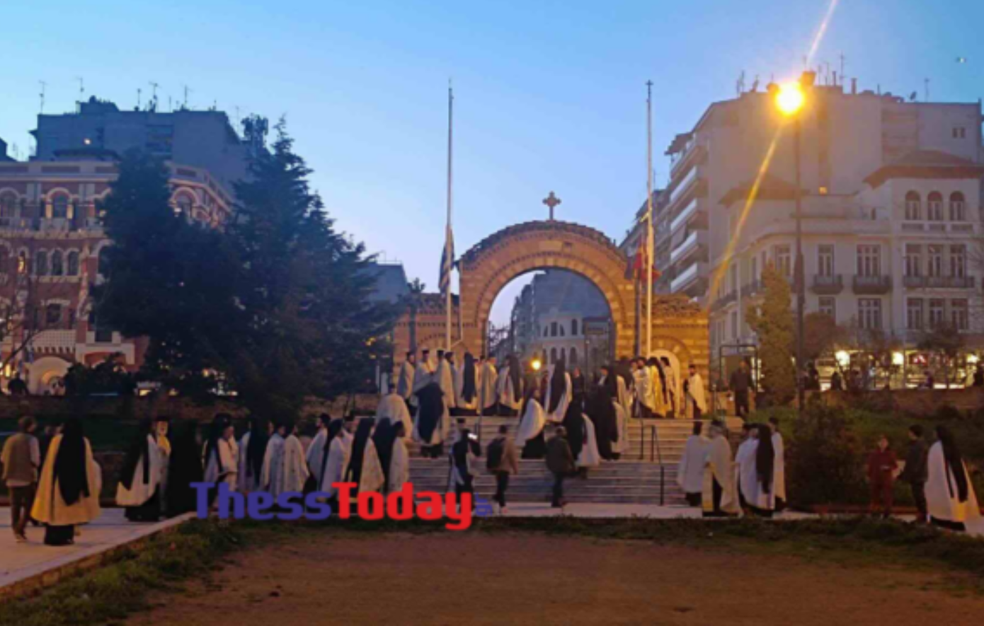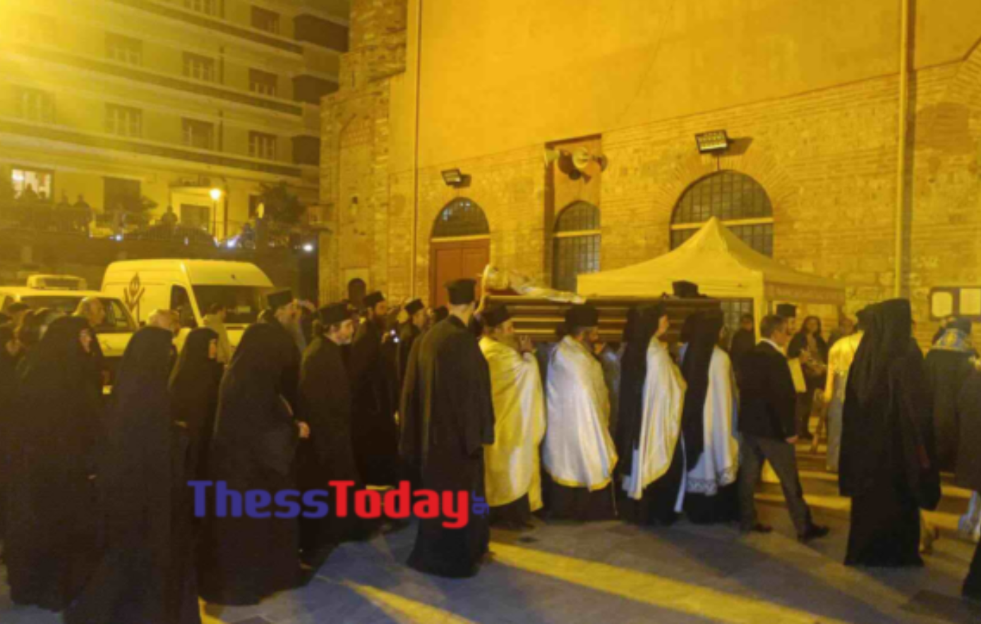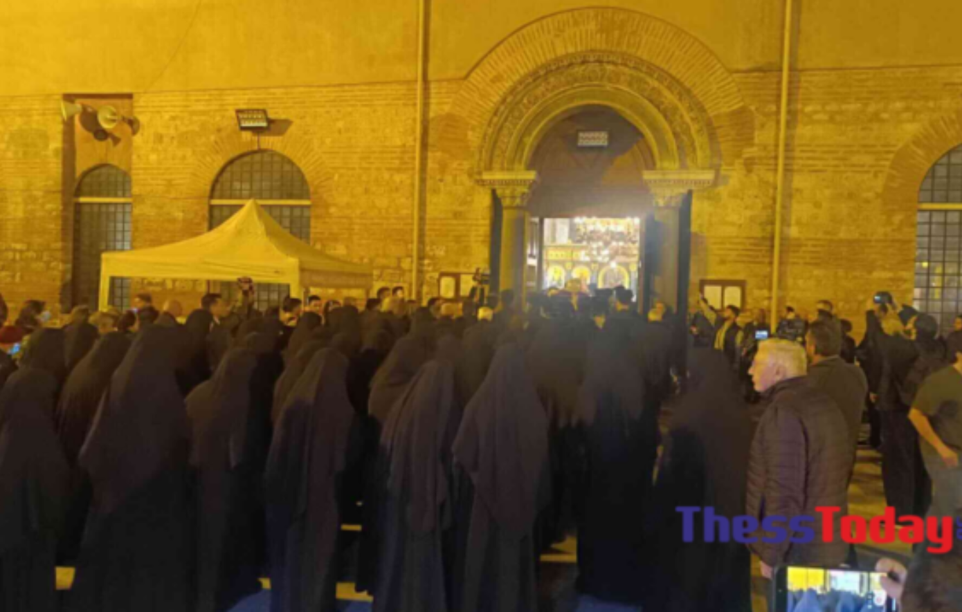 Οι καμπάνες ηχούν πένθιμα, ένα λεωφορείο πριν από λίγο αποβίβασε πιστούς ντυμένους στα μαύρα που ήρθαν να αποχαιρετήσουν τον ποιμενάρχη Θεσσαλονίκης, ενώ η μαζική προσέλευση του κόσμου θα συνεχιστεί μέχρι και το Σάββατο, οπότε αναμένεται να ψαλεί η εξόδιος ακολουθία, στον Ιερό Ναό της του Θεού Αγίας Σοφίας.