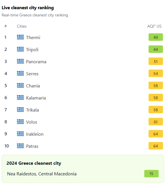 Η ίδια έρευνα αναφέρει και τις πόλεις με την καλύτερη ποιότητα αέρα για το 2024. Αυτές είναι: