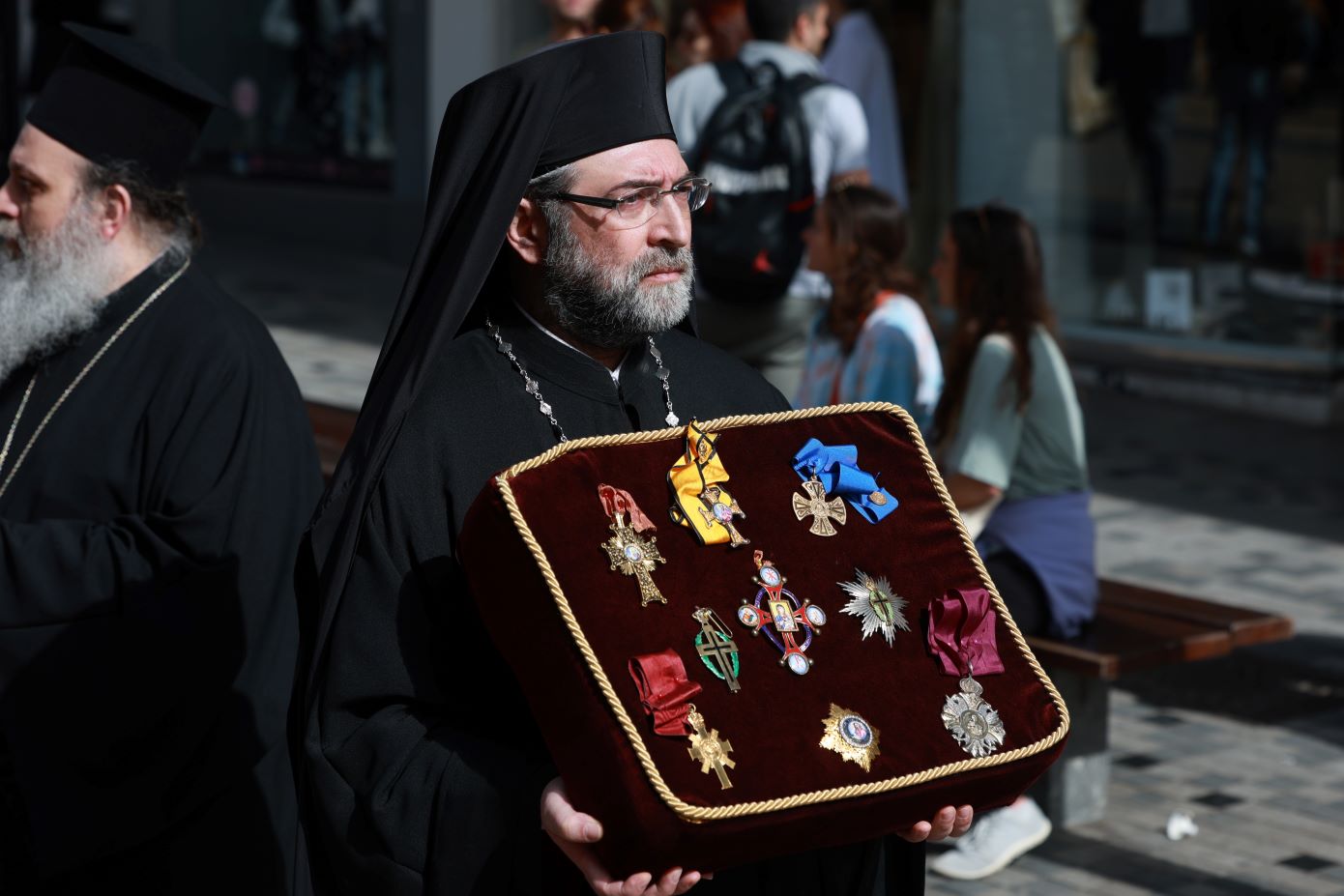 Νωρίτερα, προεξάρχοντος του αρχιεπισκόπου Αθηνών και πάσης Ελλάδος Ιερώνυμου, τελέστηκε στον Καθεδρικό και Προσκυνηματικό Ιερό Ναό της του Θεού Σοφίας, η εξόδιος ακολουθία του μητροπολίτη πρώην Θεσσαλονίκης, Άνθιμου. Με την καμπάνα να ηχεί πένθιμα, πλήθος κόσμου συνέρευσε στον ναό για να αποχαιρετήσει τον ιεράρχη και στη συνέχεια ακολούθησε με πομπή, μέχρι τον ναό του Αγίου Γρηγορίου.