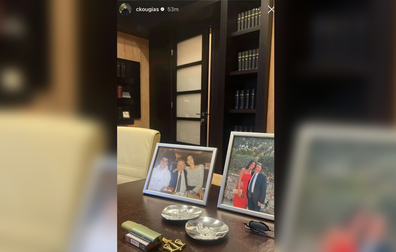 Στη φωτογραφία που ανέβασε σε story στο Instagram, δείχνει τις κορνίζες που διατηρούσε στο γραφείο του ο Αλέξης Κούγιας, με οικογενειακές φωτογραφίες.
