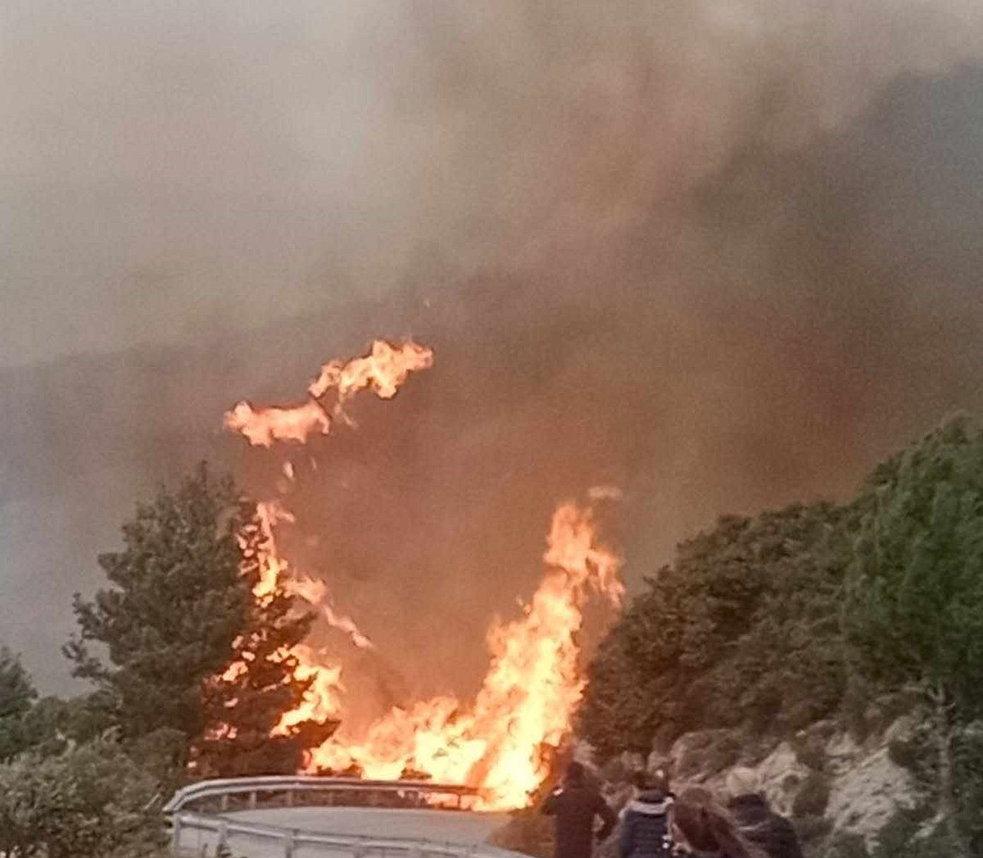 Μήνυμα από το 112 εστάλη νωρίτερα στους κατοίκους του Αγίου Νικήτα προκειμένου να απομακρυνθούν προς Λευκάδα λόγω της φωτιάς.