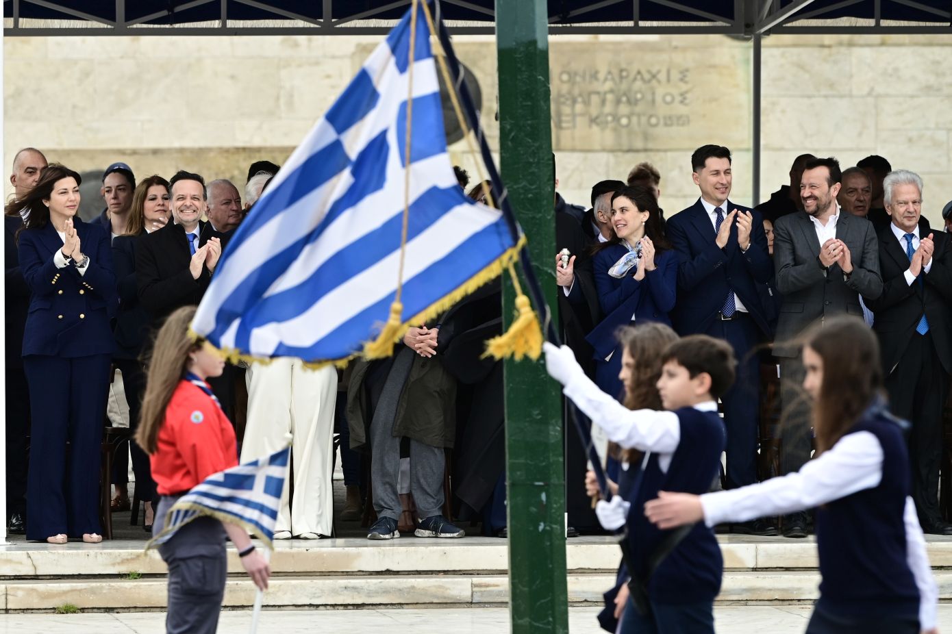 Πλήθος κόσμου βρέθηκε στην πλατεία Συντάγματος και χειροκρότησε τα παιδιά, που παρέλασαν παρουσία της υπουργού Παιδείας, Θρησκευμάτων και Αθλητισμού, Σοφίας Ζαχαράκη, του προέδρου της Βουλής, Νικήτα Κακλαμάνη, του δήμαρχου Αθηναίων, Χάρη Δούκα, και άλλων επισήμων.