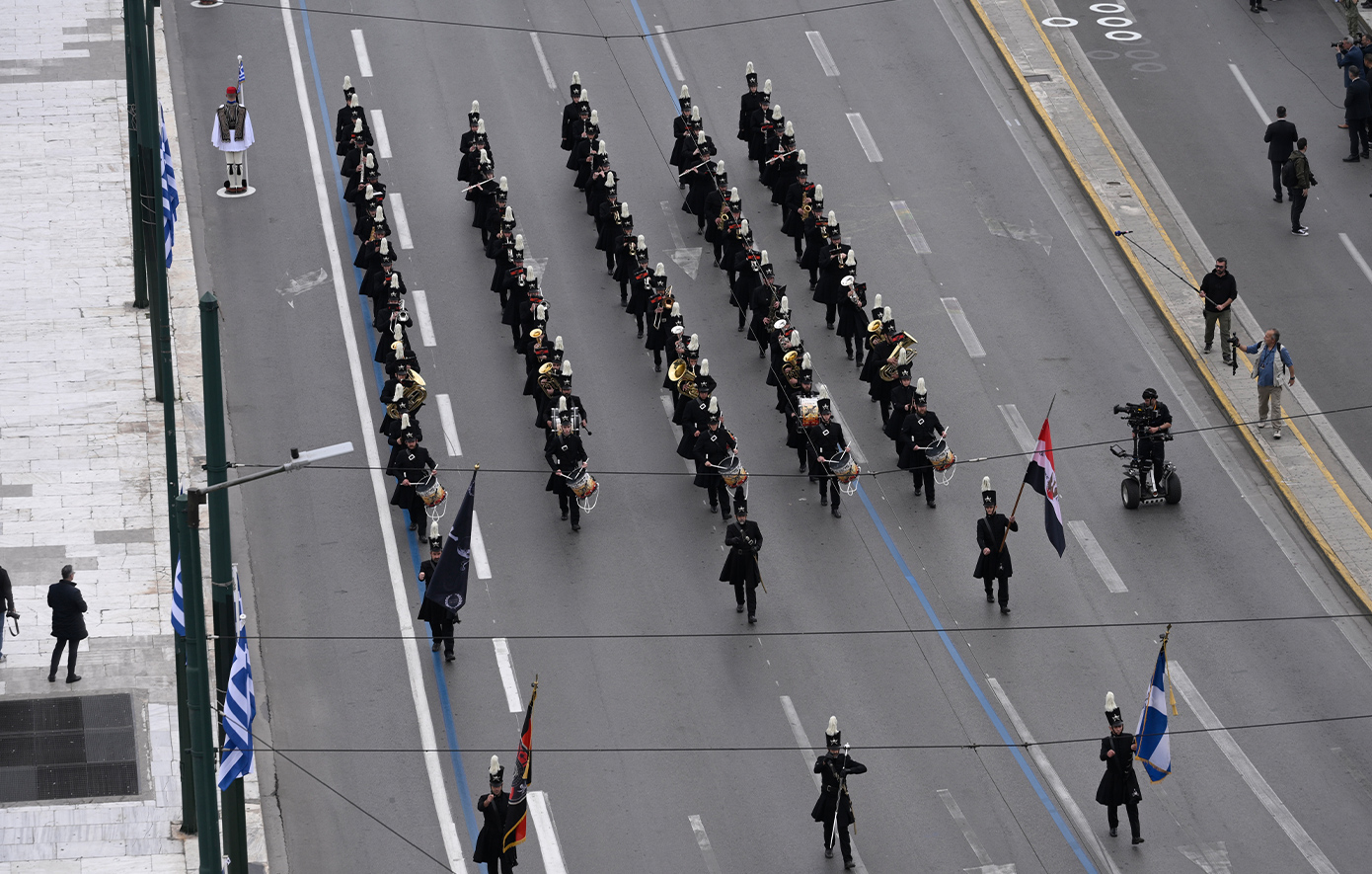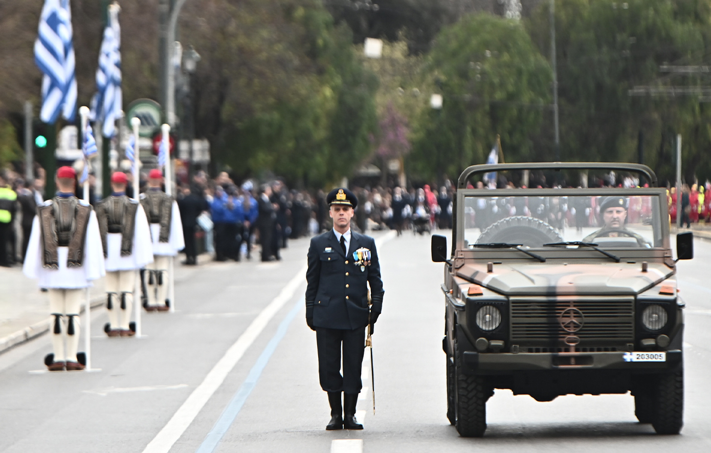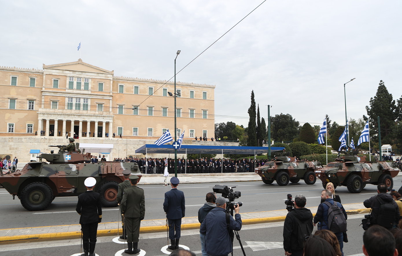 Η στρατιωτική παρέλαση ξεκίνησε στις 11:15 π.μ. στο Σύνταγμα παρουσία της πολιτεικαής, πολιτικής, δικαστικής, θρησκευτικής και στρατιωτικής ηγεσίας