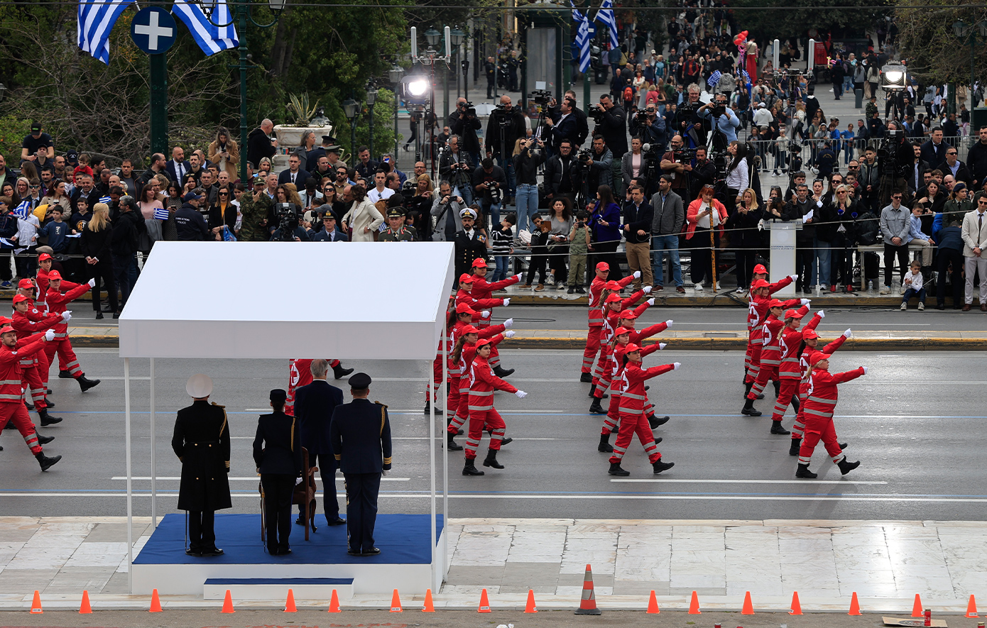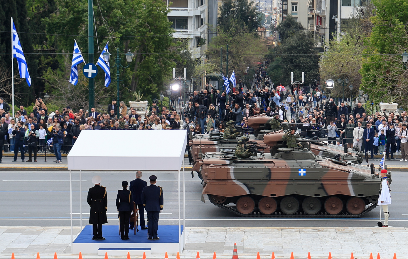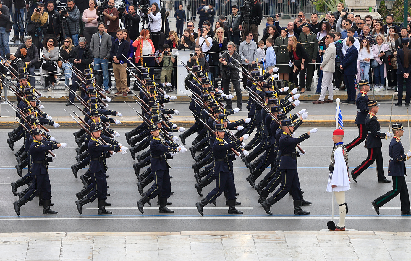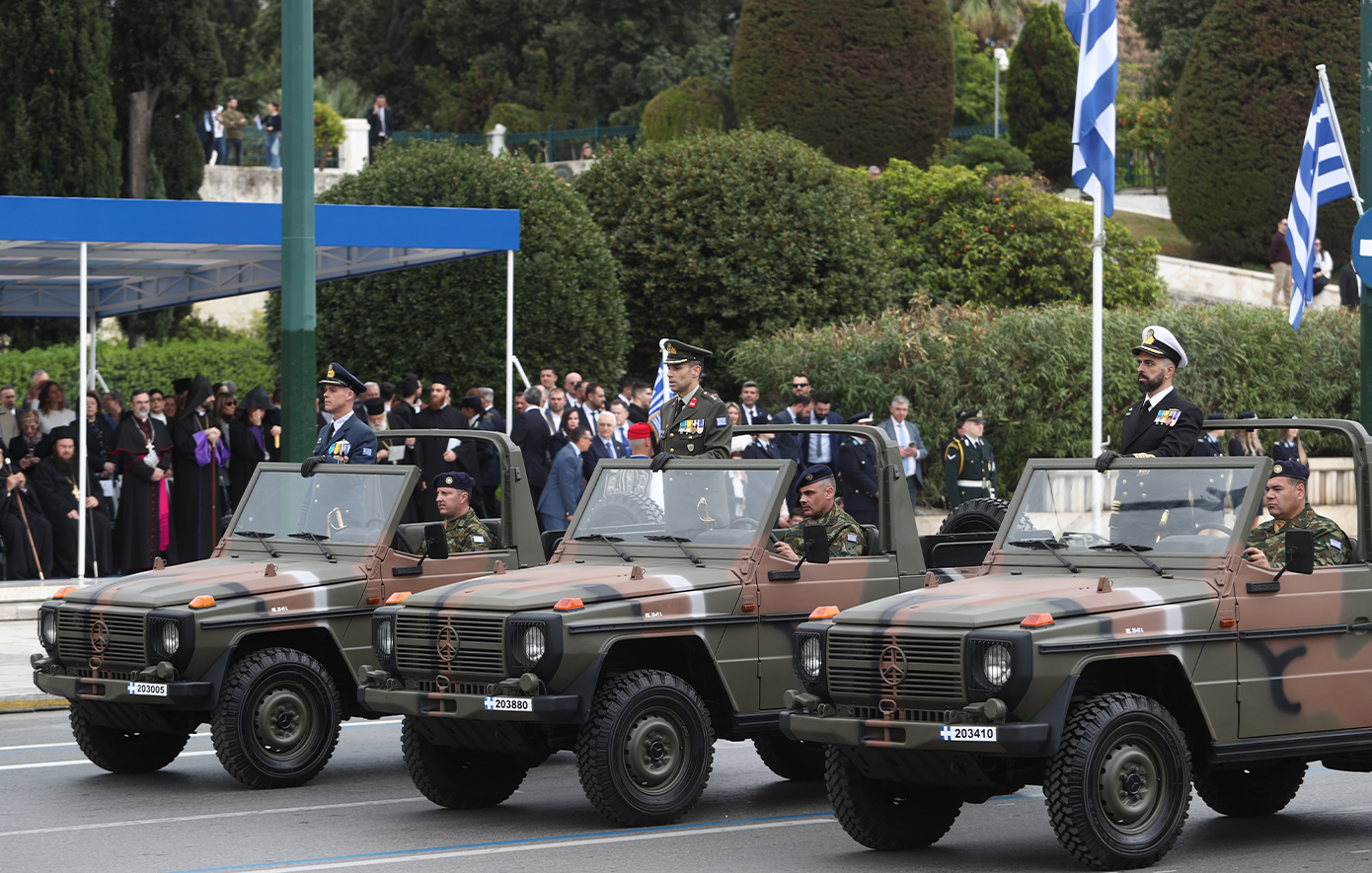 Η στρατιωτική παρέλαση ξεκίνησε στις 11:15 π.μ. στο Σύνταγμα παρουσία της πολιτεικαής, πολιτικής, δικαστικής, θρησκευτικής και στρατιωτικής ηγεσίας